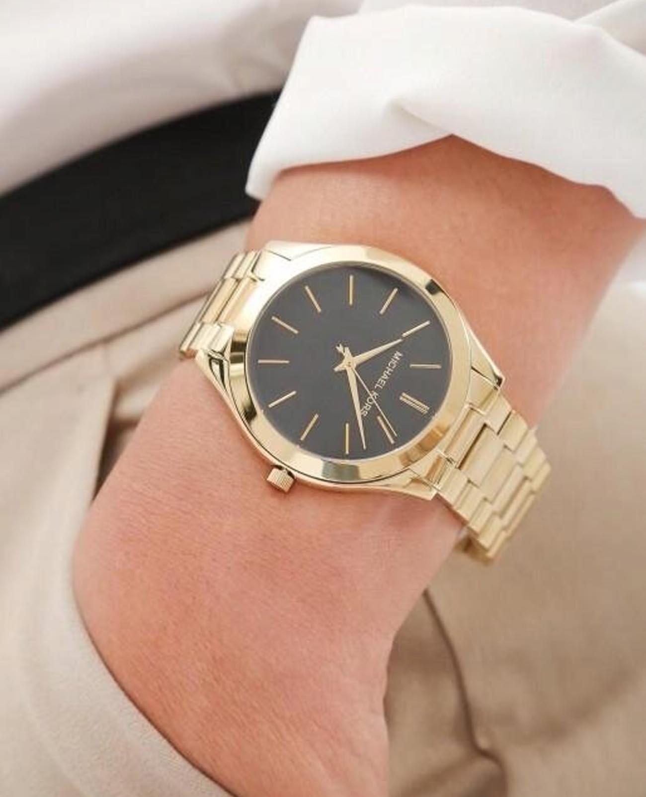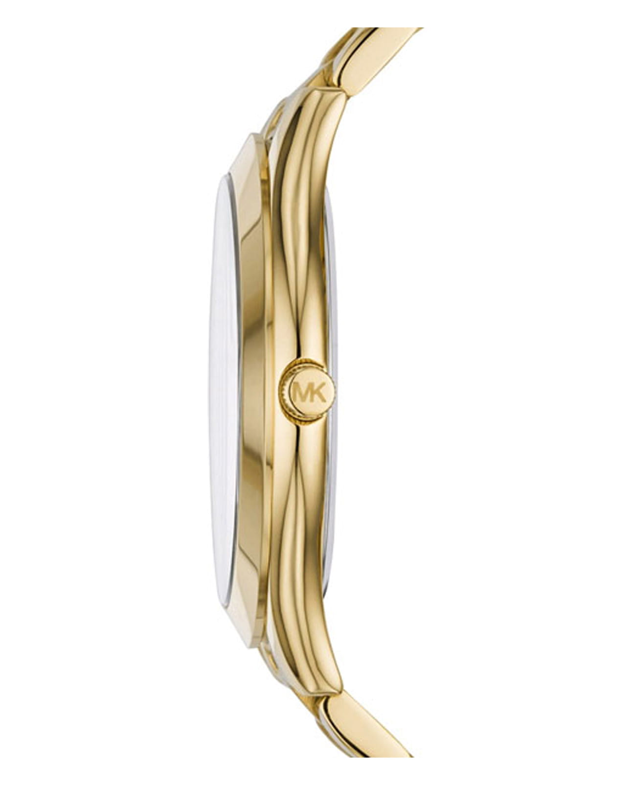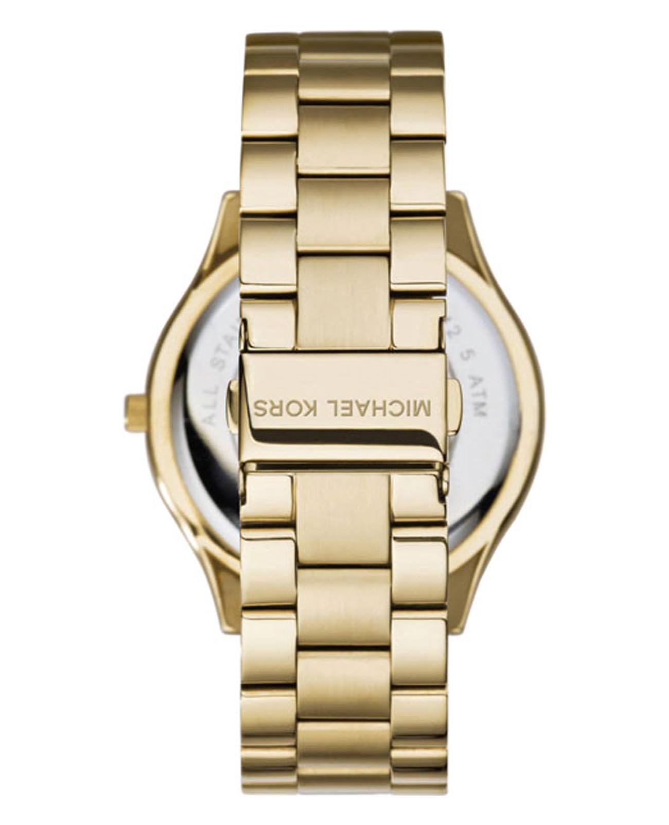 Женские американские часы Michael Kors Slim Runway MK3478, кварцевый механизм с высокой точностью. Минеральное стеклоМинеральное стеклоМинеральное стекло представляет собой искусственно выращенный минерал кварца. Такое стекло отличается особой устойчивостью к повреждениям и царапинам. Уступает по некоторым качествам сапфировому стеклу., устойчивое к мелким механическим повреждениям. Корпус часов выполнен из нержавеющей стали с PVD-покрытиемPVDУльтратонкое покрытие наносится в технике вакуумного напыления, сочетает в себе нитрид титана особой прочности со слоем золота или оксида хрома. Несёт в себе декоративную или защитную функцию.. Класс водозащиты: 50 метров, позволит защитить корпус от случайных брызг или капель дождя. Стальной браслет с PVD-покрытиемPVDУльтратонкое покрытие наносится в технике вакуумного напыления, сочетает в себе нитрид титана особой прочности со слоем золота или оксида хрома. Несёт в себе декоративную или защитную функцию. на раскладной застёжкеРаскладная застёжкаТакой тип застёжки используется только на браслетах из металла. Она никогда не раскрывается полностью, происходит разделение на 2 и более частей. Раскладывающая застёжка снизит вероятность потери часов к минимуму..