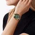 Женские американские часы-хронографХронографФункция позволяет измерять отрезки времени с особой точностью: часы, минуты, секунды. Верным признаком хронографа является наличие на циферблате 3 дополнительных окошек-счётчиков. с секундомеромСекундомерСекундоме́р — прибор, способный измерять интервалы времени с точностью до долей секунды. и с минеральным стекломМинеральное стеклоМинеральное стекло представляет собой искусственно выращенный минерал кварца. Такое стекло отличается особой устойчивостью к повреждениям и царапинам. Уступает по некоторым качествам сапфировому стеклу. Michael Kors Bradshaw MK7257, кварцевый механизм с высокой точностью. Корпус часов изготовлен из стали с PVD-покрытиемPVDУльтратонкое покрытие наносится в технике вакуумного напыления, сочетает в себе нитрид титана особой прочности со слоем золота или оксида хрома. Несёт в себе декоративную или защитную функцию.. Циферблат выполнен по технологии Sunray (солнечные лучи). Три дополнительных индикатора. Метки в виде штрихов и римских цифр. Окошко даты находится между 4 и 5 часами. Заводная головка с защитой. Класс водозащиты: 100 метров, позволит плавать, нырять и заниматься другими водными видами спорта. Стальной браслет с PVD-покрытиемPVDУльтратонкое покрытие наносится в технике вакуумного напыления, сочетает в себе нитрид титана особой прочности со слоем золота или оксида хрома. Несёт в себе декоративную или защитную функцию. на раскладной застёжкеРаскладная застёжкаТакой тип застёжки используется только на браслетах из металла. Она никогда не раскрывается полностью, происходит разделение на 2 и более частей. Раскладывающая застёжка снизит вероятность потери часов к минимуму..