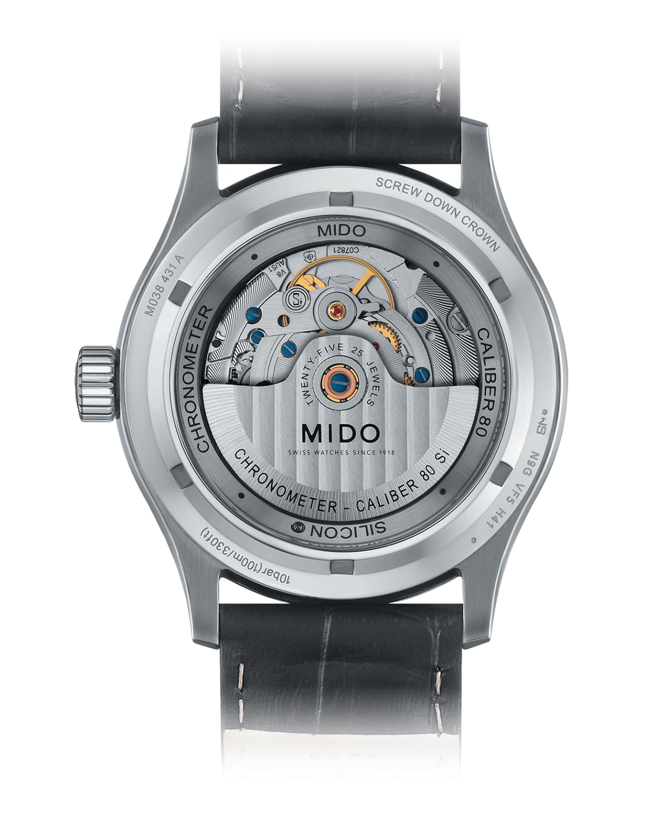 Мужские швейцарские механические часы с хронометром Mido Multifort Chronometer 1 M038.431.16.031.00, механический механизм (автоматический калибр) с высокой точностью. Сапфировое стекло устойчивое к появлению царапин, обладающее высокой прозрачностью. Класс водозащиты: 100 метров, позволит плавать, нырять и заниматься другими водными видами спорта. Корпус часов изготовлен из стали, серебристого цвета. Невероятно точные и прочные часы украшены характерным для коллекции узором «Женевские полосы». Градуированный безель и часовые метки и стрелки с сатинированной отделкой придают им еще более изысканный вид. Необычную заднюю крышку корпуса дополняет интегрированный фланец с гравировкой.