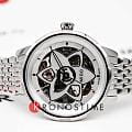 Часы MIDO Rainflower Blossom (артикул M043.236.11.101.00) представляют собой изысканное сочетание элегантности и современного дизайна, вдохновлённого формой лепестков лотоса Сингапурского музея ArtScience. Корпус диаметром 34 мм выполнен из нержавеющей стали с водозащитой до 3 бар (30 метров). Прозрачная задняя крышка открывает вид на изысканный механизм. Циферблат из белого перламутра с цветочным узором выполнен в скелетонизированном стиле, дополняется накладными часовыми метками. Циферблат защищён сапфировым стекломСапфировое стеклоПрочный и надёжный материал из кристалла сапфира синтетического происхождения, характеризующийся особой твёрдостью и устойчивостью к царапинам и повреждениям. с антибликовым покрытием.