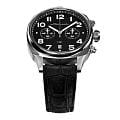 Мужские кварцевые часы — это стильный и функциональный аксессуар. Корпус диаметром 42 мм выполнен из нержавеющей стали 316L с зеркальной полировкой. Циферблат чёрного цвета оформлен индексами и стрелками с люминесцентным покрытиемЛюминесцентное покрытиеПозволяет считывать показания времени в темноте. Производители наносят на стрелки, часовые индексы, безель или поверхность циферблата светонакопительный состав, дающий холодное свечение.. Окошко даты расположено в положении 6 часов. Циферблат защищён сапфировым стекломСапфировое стеклоПрочный и надёжный материал из кристалла сапфира синтетического происхождения, характеризующийся особой твёрдостью и устойчивостью к царапинам и повреждениям.. Механизм — японский кварцевый калибр Miyota 6S21 с функцией хронографаХронографФункция позволяет измерять отрезки времени с особой точностью: часы, минуты, секунды. Верным признаком хронографа является наличие на циферблате 3 дополнительных окошек-счётчиков.. Часы оснащены кожаным ремешком чёрного цвета с текстурой под аллигатора и стандартной застёжкой. Водонепроницаемость 100 м позволяет использовать часы для плавания и повседневного ношения. Идеальный выбор для тех, кто ценит точность, качество и выразительный дизайн.