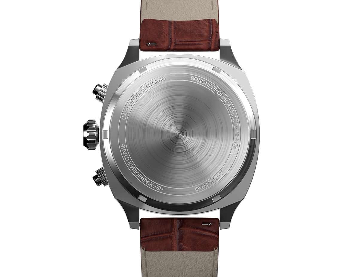 Мужские кварцевые часы — это стильный и функциональный аксессуар. Корпус диаметром 42 мм выполнен из нержавеющей стали 316L с зеркальной полировкой. Циферблат белого цвета оформлен индексами и стрелками с люминесцентным покрытиемЛюминесцентное покрытиеПозволяет считывать показания времени в темноте. Производители наносят на стрелки, часовые индексы, безель или поверхность циферблата светонакопительный состав, дающий холодное свечение.. Окошко даты расположено в положении 6 часов. Циферблат защищён сапфировым стекломСапфировое стеклоПрочный и надёжный материал из кристалла сапфира синтетического происхождения, характеризующийся особой твёрдостью и устойчивостью к царапинам и повреждениям.. Механизм — японский кварцевый калибр Miyota 6S21 с функцией хронографаХронографФункция позволяет измерять отрезки времени с особой точностью: часы, минуты, секунды. Верным признаком хронографа является наличие на циферблате 3 дополнительных окошек-счётчиков.. Часы оснащены кожаным ремешком коричневого цвета с текстурой под аллигатора и стандартной застёжкой. Водонепроницаемость 100 м позволяет использовать часы для плавания и повседневного ношения. Идеальный выбор для тех, кто ценит точность, качество и выразительный дизайн.
