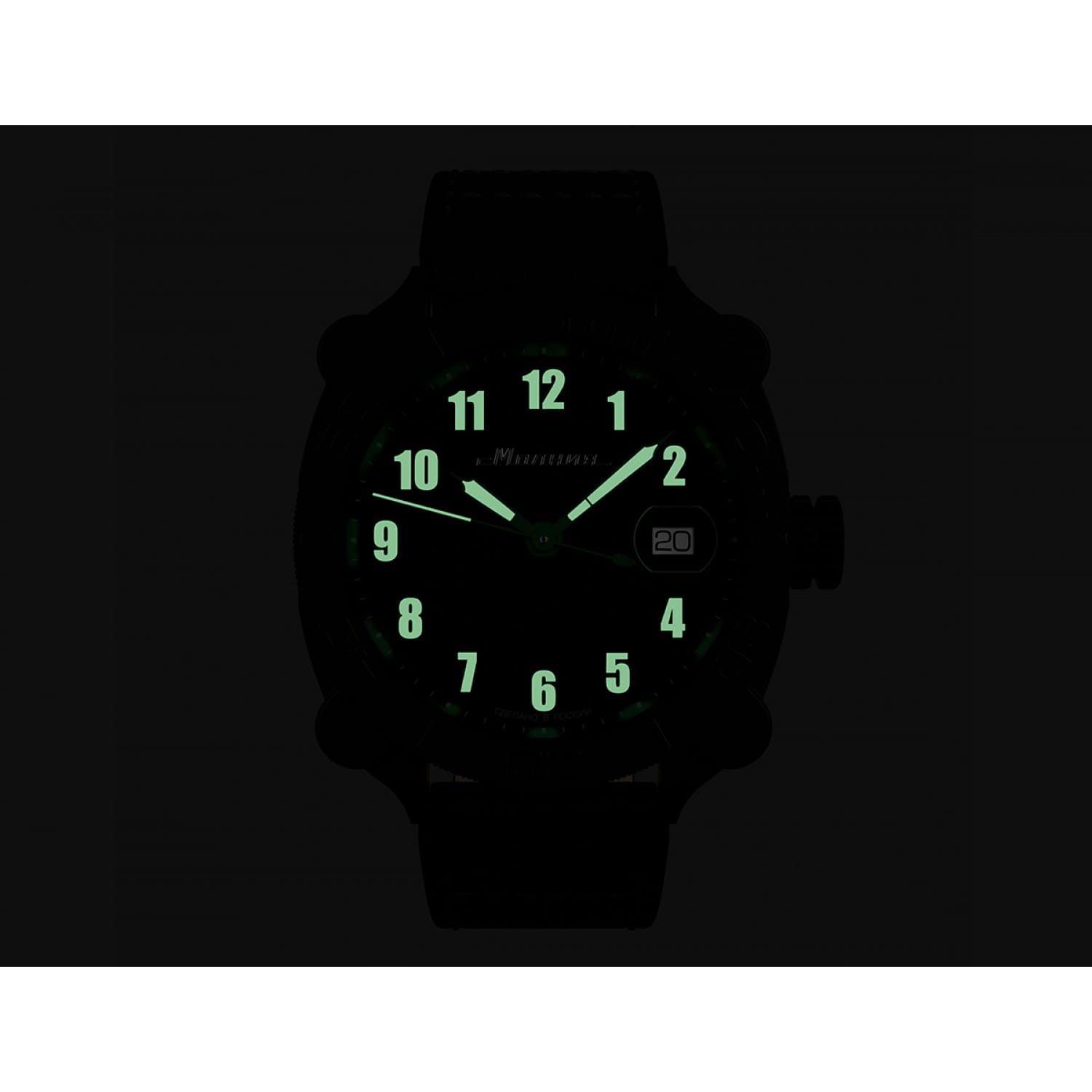 Мужские механические часы с автоподзаводом от бренда «МОЛНИЯ» — это стильный аксессуар, вдохновлённый дизайном приборной панели легендарного танка Т-72. Корпус диаметром 42 мм и толщиной 12 мм выполнен из нержавеющей стали 316L с IP-покрытиемIP-покрытиеМетод ионного напыления. Демонстрирует повышенную устойчивость к истиранию, окислению и химическим веществам. Под воздействием высокого давления и температуры около 1500°C молекулы металла надёжно соединяются с частицами корпуса часов.. БезельБезельВнешний ободок, закрепляющий стекло. В спортивных часах так называется поворотное кольцо с делениями на циферблате, выполняет роль таймера – замеряет отрезки времени на шкале. Неподвижный безель – элемент декора. Однонаправленно вращающийся безель на дайверских часах позволяет фиксировать моменты погружения и выныривания на поверхность. однонаправленный, вращающийся. Циферблат чёрного цвета оформлен арабскими цифрами и логотипом бренда. Окошко даты расположено в положении 3 часов и оснащено увеличительным стеклом. Стрелки и метки с люминесцентным покрытиемЛюминесцентное покрытиеПозволяет считывать показания времени в темноте. Производители наносят на стрелки, часовые индексы, безель или поверхность циферблата светонакопительный состав, дающий холодное свечение. Super-LumiNova. Циферблат защищён сапфировым стекломСапфировое стеклоПрочный и надёжный материал из кристалла сапфира синтетического происхождения, характеризующийся особой твёрдостью и устойчивостью к царапинам и повреждениям. с антибликовым покрытиемАнтибликовое покрытиеСлой оксида металла в 0,13-0,3 микрон, благодаря которому стекло часов не бликует и не отражает свет. Антибликовое покрытие уменьшает отражение света в 10 раз, обеспечивая отличную читаемость показателей циферблата.. Механизм — Русский автоматический калибр Восток 2416 запас хода до 42 часов. Заводная головка стилизована под гусеничную ленту, задняя крышка с гравировкой танка. Часы оснащены кожаным ремешком чёрного цвета с классической пряжкой и системой быстрой замены. Водонепроницаемость 100 м позволяет использовать часы для плавания и повседневного ношения. Идеальный выбор для тех, кто ценит инженерное наследие и мощный дизайн.