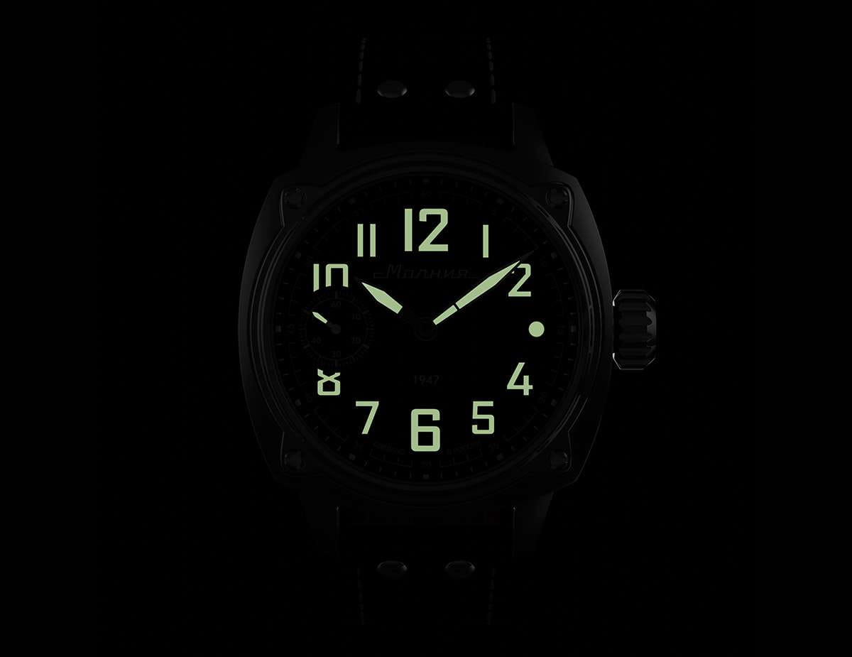 Мужские механические часы с ручным подзаводом — это аксессуар от легендарного бренда «МОЛНИЯ», созданный на Челябинском часовом заводе. Корпус диаметром 42 мм выполнен из нержавеющей стали 316L с зеркальной полировкой. БезельБезельВнешний ободок, закрепляющий стекло. В спортивных часах так называется поворотное кольцо с делениями на циферблате, выполняет роль таймера – замеряет отрезки времени на шкале. Неподвижный безель – элемент декора. Однонаправленно вращающийся безель на дайверских часах позволяет фиксировать моменты погружения и выныривания на поверхность. также выполнен из стали с зеркальной отделкой. Циферблат чёрного цвета оформлен индексами и стрелками. Малая секундная стрелка вынесена на позицию 9 часов. Стрелки и метки с люминесцентным покрытиемЛюминесцентное покрытиеПозволяет считывать показания времени в темноте. Производители наносят на стрелки, часовые индексы, безель или поверхность циферблата светонакопительный состав, дающий холодное свечение. Super-LumiNova, обеспечивающим хорошую читаемость в темноте. Циферблат защищён сапфировым стекломСапфировое стеклоПрочный и надёжный материал из кристалла сапфира синтетического происхождения, характеризующийся особой твёрдостью и устойчивостью к царапинам и повреждениям. с антибликовым покрытиемАнтибликовое покрытиеСлой оксида металла в 0,13-0,3 микрон, благодаря которому стекло часов не бликует и не отражает свет. Антибликовое покрытие уменьшает отражение света в 10 раз, обеспечивая отличную читаемость показателей циферблата.. Механизм — мануфактурный калибр 3603, собранный вручную, с запасом хода до 40 часов. Прозрачная задняя крышка позволяет наблюдать за работой механизма. Часы оснащены кожаным ремешком чёрного цвета с белой отстрочкой и классической пряжкой. Водонепроницаемость 100 м позволяет использовать часы для плавания и повседневного ношения. Идеальный выбор для тех, кто ценит российское качество и традиции.