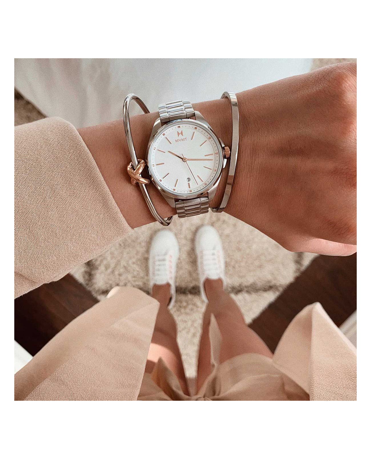 Женские кварцевые часы MVMT 28000001-D – лаконичная красота и изысканная элегантность. Оригинальная модель с классическим оформлением станет превосходным завершением образа, наделив его индивидуальным характером. Корпус выполнен из нержавеющей стали серебристого цвета, диаметром 36 мм и толщиной 8 мм, что обеспечивает долговечность и утончённый внешний вид. Закаленное минеральное стеклоМинеральное стеклоМинеральное стекло представляет собой искусственно выращенный минерал кварца. Такое стекло отличается особой устойчивостью к повреждениям и царапинам. Уступает по некоторым качествам сапфировому стеклу. защищает циферблат от царапин. Стальной браслет на раскладной застёжке с фиксаторомРаскладная застёжкаТакой тип застёжки используется только на браслетах из металла. Она никогда не раскрывается полностью, происходит разделение на 2 и более частей. Раскладывающая застёжка снизит вероятность потери часов к минимуму. обеспечивает комфортное ношение. Водозащита 50 метров позволит защитить корпус от случайных брызг или капель дождя. Окошко даты находится в положении 6 часов. Рифленая заводная головка с защитой. Женский аксессуар, который покорит вас своим элегантным дизайном. Эти часы станут изысканным акцентом в вашем образе, подчеркивая вашу утонченность и хороший вкус.