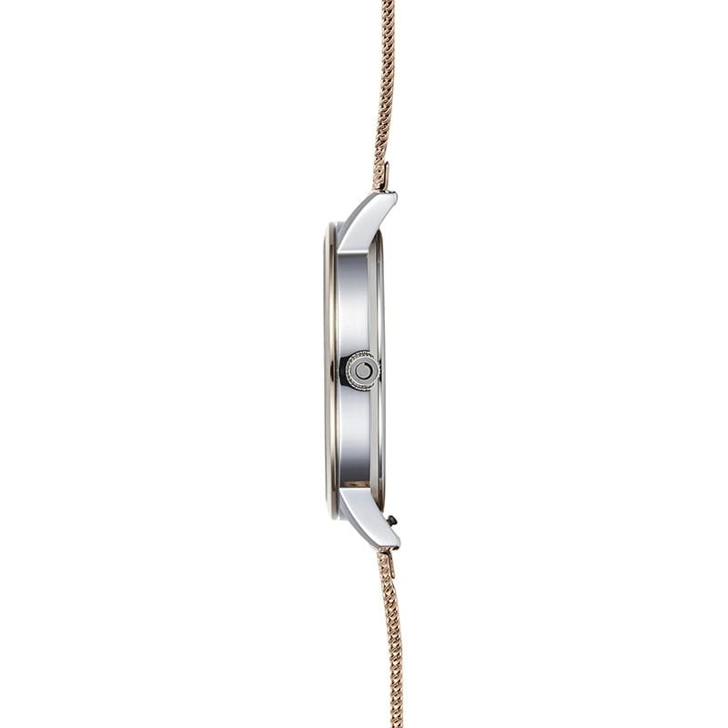 Женские кварцевые часы в классическом стиле Obaku Salvie V270LDZVMV, кварцевый механизм с высокой точностью. Класс водозащиты: 30 метров, позволит защитить корпус от случайных брызг или капель дождя. Корпус часов изготовлен из стали с частичным IP-покрытиемIP-покрытиеМетод ионного напыления. Демонстрирует повышенную устойчивость к истиранию, окислению и химическим веществам. Под воздействием высокого давления и температуры около 1500°C молекулы металла надёжно соединяются с частицами корпуса часов.. Апертура даты в позиции 6 часов. Золотисто-розовый циферблат. Стальной браслет с IP-покрытиемIP-покрытиеМетод ионного напыления. Демонстрирует повышенную устойчивость к истиранию, окислению и химическим веществам. Под воздействием высокого давления и температуры около 1500°C молекулы металла надёжно соединяются с частицами корпуса часов. выполнен в технике миланского плетения, раскладная застёжкаРаскладная застёжкаТакой тип застёжки используется только на браслетах из металла. Она никогда не раскрывается полностью, происходит разделение на 2 и более частей. Раскладывающая застёжка снизит вероятность потери часов к минимуму.. Прочное минеральное стеклоМинеральное стеклоМинеральное стекло представляет собой искусственно выращенный минерал кварца. Такое стекло отличается особой устойчивостью к повреждениям и царапинам. Уступает по некоторым качествам сапфировому стеклу. устойчивое к мелким механическим повреждениям.