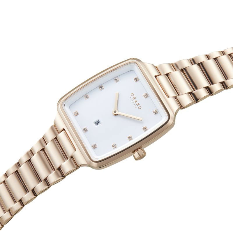Женские датские наручные часы с минеральным стекломМинеральное стеклоМинеральное стекло представляет собой искусственно выращенный минерал кварца. Такое стекло отличается особой устойчивостью к повреждениям и царапинам. Уступает по некоторым качествам сапфировому стеклу. Obaku Links V271LDVWSV, кварцевый механизм с высокой точностью. Класс водозащиты: 30 метров, позволит защитить корпус от случайных брызг или капель дождя. Корпус часов изготовлен из стали с IP-покрытиемIP-покрытиеМетод ионного напыления. Демонстрирует повышенную устойчивость к истиранию, окислению и химическим веществам. Под воздействием высокого давления и температуры около 1500°C молекулы металла надёжно соединяются с частицами корпуса часов.. Стальной браслет на раскладной застёжкеРаскладная застёжкаТакой тип застёжки используется только на браслетах из металла. Она никогда не раскрывается полностью, происходит разделение на 2 и более частей. Раскладывающая застёжка снизит вероятность потери часов к минимуму. с IP-покрытиемIP-покрытиеМетод ионного напыления. Демонстрирует повышенную устойчивость к истиранию, окислению и химическим веществам. Под воздействием высокого давления и температуры около 1500°C молекулы металла надёжно соединяются с частицами корпуса часов.. Циферблат инкрустирован кристаллами.
