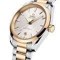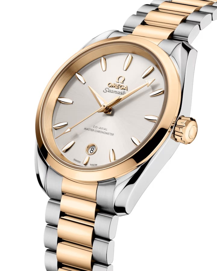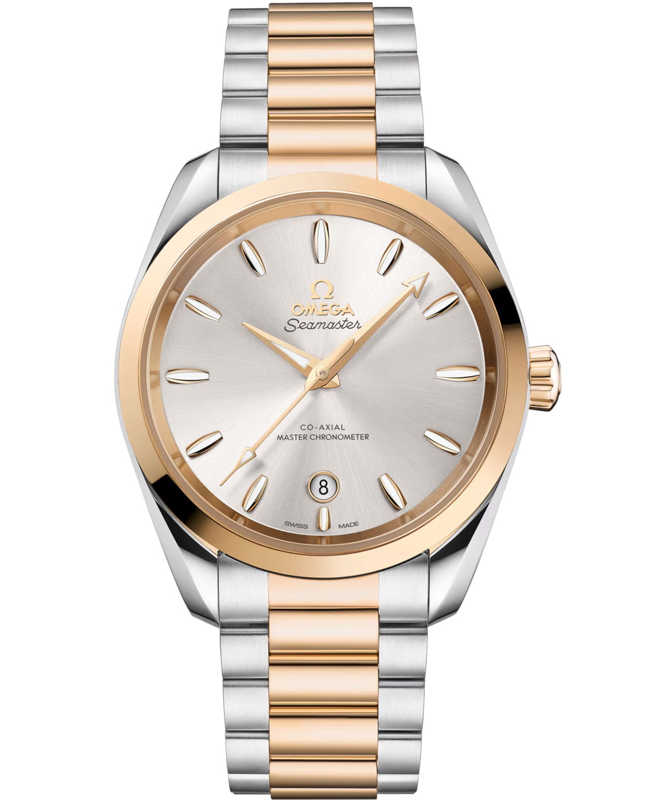 Omega Seamaster Aqua Terra выполнены в симметричном корпусе из нержавеющей стали и 18K Sedna™ золота с завинчивающейся задней крышкой, украшенной волновым узором. Циферблат дополнен окошком даты на 6 часах. Стрелки и метки оснащены люминесцентным покрытиемЛюминесцентное покрытиеПозволяет считывать показания времени в темноте. Производители наносят на стрелки, часовые индексы, безель или поверхность циферблата светонакопительный состав, дающий холодное свечение. Super-LumiNova для лучшей читаемости в темноте. Калибр Omega 8800 сертифицирован как Master Chronometer — гарантия высочайшей точности и устойчивости к магнитным полям. Запас хода составляет 55 часов. Защиту циферблата обеспечивает сапфировое стеклоСапфировое стеклоПрочный и надёжный материал из кристалла сапфира синтетического происхождения, характеризующийся особой твёрдостью и устойчивостью к царапинам и повреждениям. с антибликовым покрытиемАнтибликовое покрытиеСлой оксида металла в 0,13-0,3 микрон, благодаря которому стекло часов не бликует и не отражает свет. Антибликовое покрытие уменьшает отражение света в 10 раз, обеспечивая отличную читаемость показателей циферблата.. Водозащита позволяет использовать часы в воде без риска повреждения. Часы установлены на комбинированный браслет из 18K Sedna™ золота и нержавеющей стали с застёжка «бабочка» с кнопкамиЗастёжка "бабочка"Такой вид застёжки дополняется предохранителями, помогающими избежать случайного раскрытия браслета. Обладают изящным исполнением. . Это сочетание премиального качества, технологичности и классического дизайна.