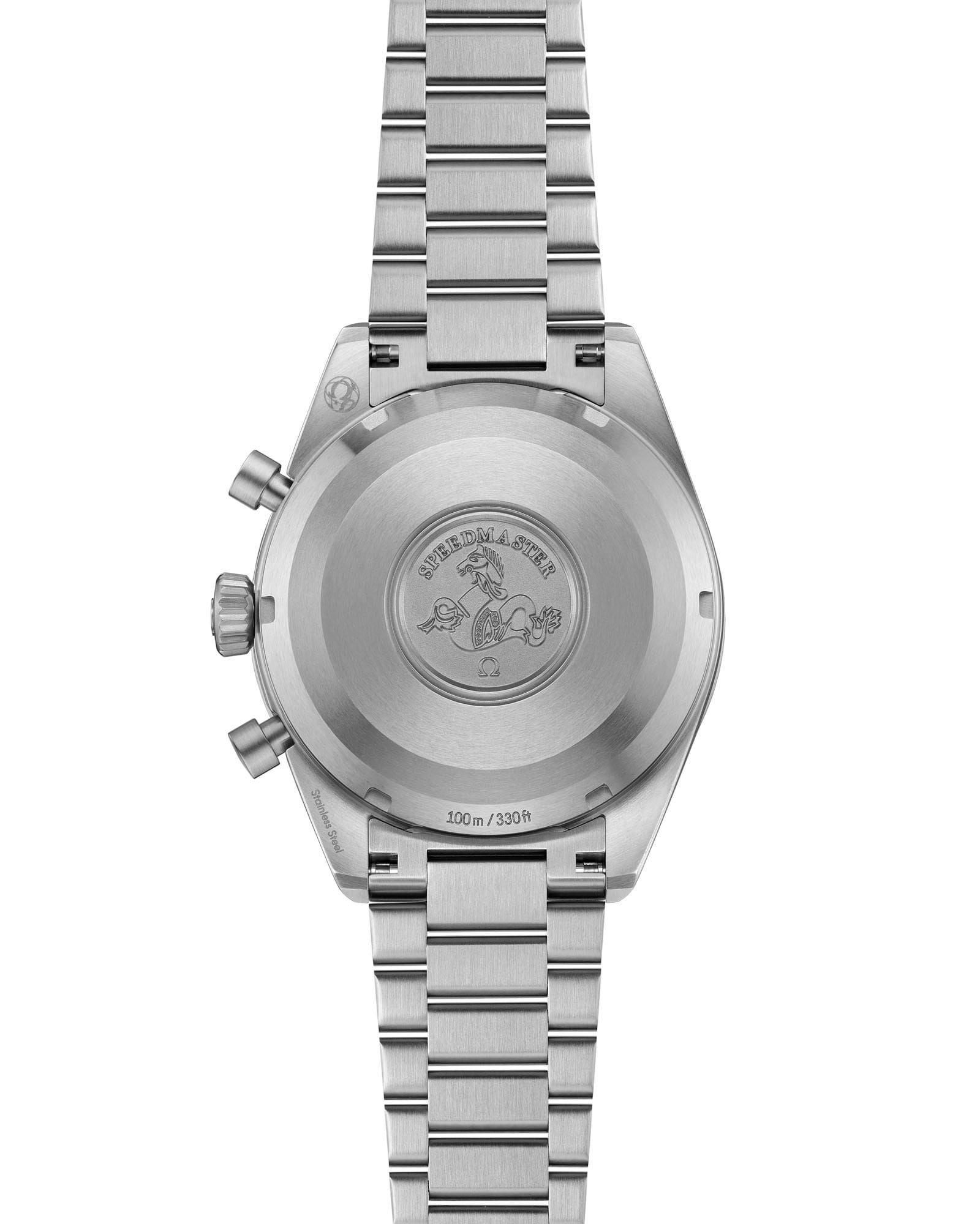 Speedmaster, участник всех шести лунных миссий, предстает в новой авиационной ипостаси, вдохновленной легендарной моделью 1957 года и космическим наследием бренда. 40,85-мм корпус из сатинированной нержавеющей стали обрамляет черный циферблат с зернистой текстурой, где внешнее кольцо цвета родия контрастирует с метками Super-LumiNovaЛюминесцентное покрытиеПозволяет считывать показания времени в темноте. Производители наносят на стрелки, часовые индексы, безель или поверхность циферблата светонакопительный состав, дающий холодное свечение., излучающими зеленое свечение. Авиационный стиль кокпита воплощен в двух опаловых счетчиках: на "3 часах" расположен 60-минутный и 12-часовой счетчик, стилизованный под топливный указатель, с матовой оранжевой стрелкой, а на "9 часах" - счетчик малых секунд с желтой стрелкой и синим искусственным горизонтом. Черные матовые стрелки с Super-LumiNovaЛюминесцентное покрытиеПозволяет считывать показания времени в темноте. Производители наносят на стрелки, часовые индексы, безель или поверхность циферблата светонакопительный состав, дающий холодное свечение. сочетаются с центральной хронографной стрелкойХронографФункция позволяет измерять отрезки времени с особой точностью: часы, минуты, секунды. Верным признаком хронографа является наличие на циферблате 3 дополнительных окошек-счётчиков., чей оранжевый наконечник напоминает авиационные приборы. Модель дополнена браслетом с плоскими звеньями и фирменной системой "винт-штифт", а в комплекте идут ремень NATO с кевларовым плетением и дорожный чехол с инструментами. В сердце часов - калибр OMEGA Co-Axial Master Chronometer 9900, продолжающий традиции точности.