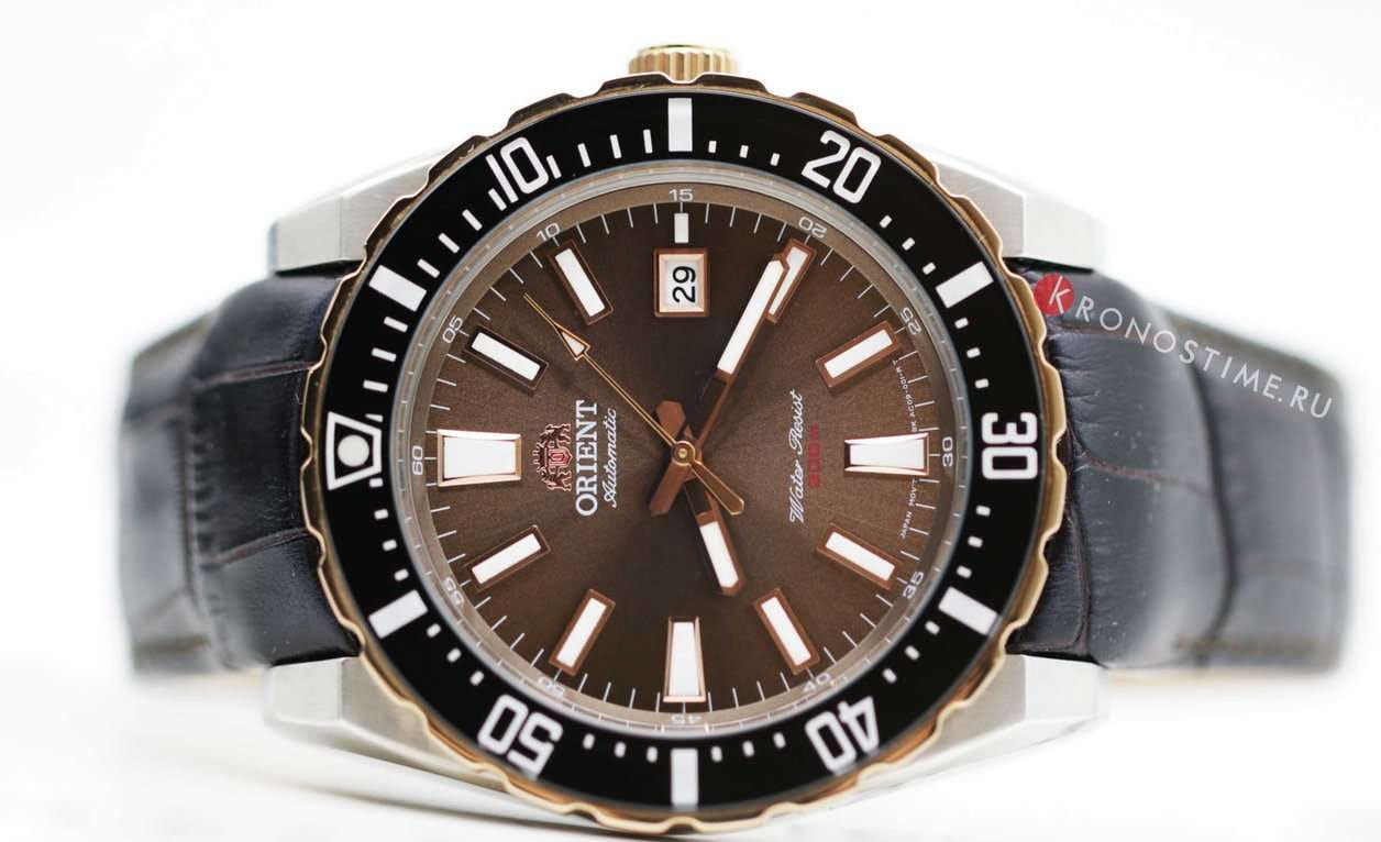 Orient AC09002T — это элегантные и надежные часы, созданные для тех, кто ценит стиль и функциональность. Корпус диаметром 46 мм выполнен из нержавеющей стали, что придаёт модели выразительный и современный вид. Вращающийся однонаправленный безельБезельВнешний ободок, закрепляющий стекло. В спортивных часах так называется поворотное кольцо с делениями на циферблате, выполняет роль таймера – замеряет отрезки времени на шкале. Неподвижный безель – элемент декора. Однонаправленно вращающийся безель на дайверских часах позволяет фиксировать моменты погружения и выныривания на поверхность. черного цвета позволяет точно отсчитывать время погружения, делая эти часы отличным выбором для активного образа жизни. Коричневый циферблат дополнен крупными стрелками и часовыми метками с люминесцентным покрытиемЛюминесцентное покрытиеПозволяет считывать показания времени в темноте. Производители наносят на стрелки, часовые индексы, безель или поверхность циферблата светонакопительный состав, дающий холодное свечение., что гарантирует превосходную читаемость даже в условиях низкой освещённости. Окошко даты удобно расположено на отметке «3 часа». Защитное минеральное стеклоМинеральное стеклоМинеральное стекло представляет собой искусственно выращенный минерал кварца. Такое стекло отличается особой устойчивостью к повреждениям и царапинам. Уступает по некоторым качествам сапфировому стеклу. обеспечивает дополнительную прочность и устойчивость к повреждениям. Часы оснащены автоматическим механизмом Orient калибра F6724 с функцией ручного подзавода и стоп-секундой, что повышает точность и удобство использования. Модель комплектуется стильным коричневым кожаным ремешком с классической застёжкой, который гармонично дополняет общий дизайн. Водонепроницаемость до 200 метров делает эти часы отличным выбором для водных видов спорта и повседневного ношения.
