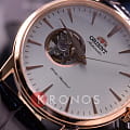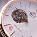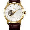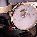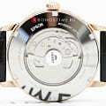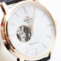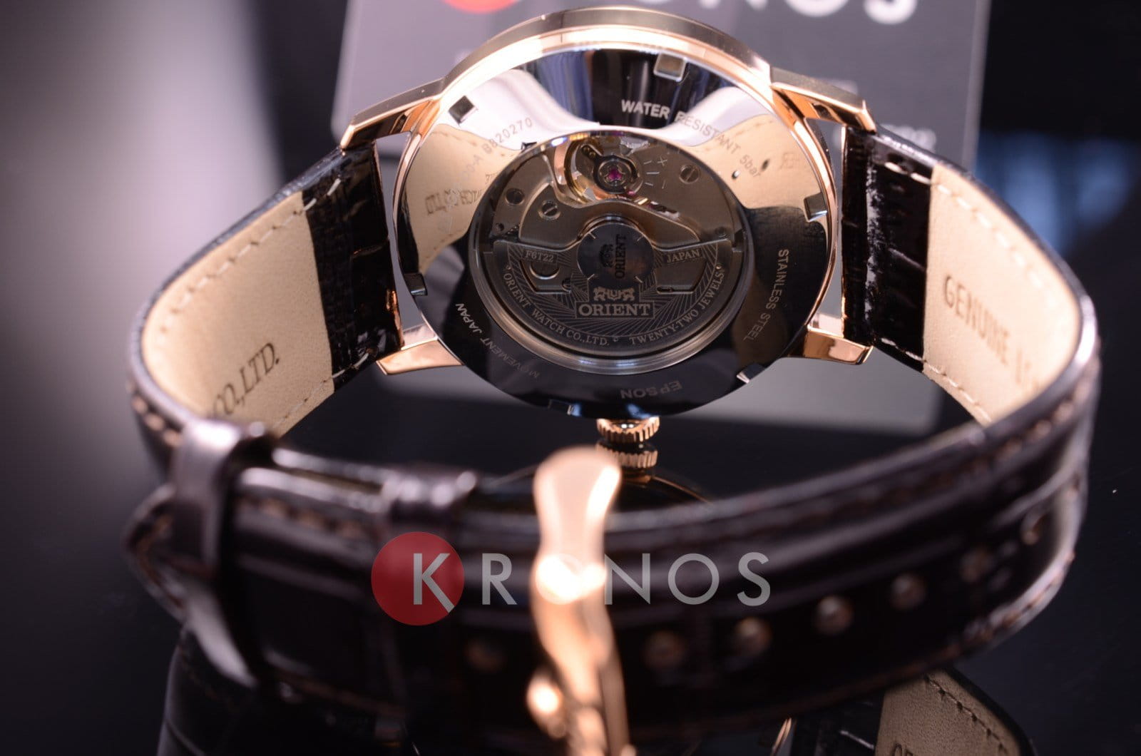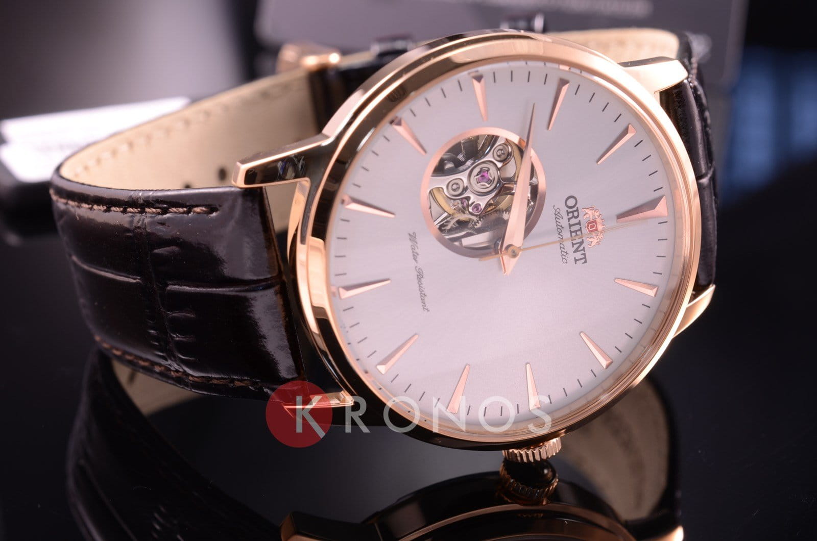 Мужские механические часы Orient AG02002W из коллекции Contemporary — это сдержанная элегантность, созданная для уверенных в себе деловых мужчин. Модель оснащена калибром F6T22 с автоподзаводом и возможностью ручной подзаводки. Механизм имеет 22 драгоценных камня и работает на частоте 21 600 полуколебаний в час. Также реализована функция стоп-секунды для точной установки времени. Циферблат белого цвета оформлен с использованием штриховых меток, что придаёт модели классическую чистоту линий. Через прозрачное окошко на циферблате можно наблюдать за работой механизма — это подчёркивает связь между внешним дизайном и внутренней технологией. Защиту циферблата обеспечивает минеральное стеклоМинеральное стеклоМинеральное стекло представляет собой искусственно выращенный минерал кварца. Такое стекло отличается особой устойчивостью к повреждениям и царапинам. Уступает по некоторым качествам сапфировому стеклу., устойчивое к мелким повреждениям. Корпус диаметром 41 мм изготовлен из стали с розовым PVD-покрытиемPVDУльтратонкое покрытие наносится в технике вакуумного напыления, сочетает в себе нитрид титана особой прочности со слоем золота или оксида хрома. Несёт в себе декоративную или защитную функцию., что придаёт модели благородный внешний вид и устойчивость к царапинам. Задняя крышка — завинчивающаяся и прозрачная, что позволяет рассмотреть тонкости работы механизма и подчёркивает внимание к деталям внутренней отделки. Ремешок из натуральной кожи дополнен классической застёжкой, обеспечивая комфорт и строгий стиль, соответствующий деловому образу. Часы водонепроницаемы до 50 метров (), что позволяет использовать их в повседневных условиях — при мытье рук или под лёгким дождём. Эти часы станут универсальным аксессуаром для тех, кто ценит сочетание традиций, точности и эстетики — идеальный выбор для повседневной носки и особых случаев.