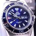Наручные часы оснащены японским автоматическим механизмом Orient 46943, отличающимся запасом хода на 40 часов. Привлекательно смотрится крупный вращающийся безельБезельВнешний ободок, закрепляющий стекло. В спортивных часах так называется поворотное кольцо с делениями на циферблате, выполняет роль таймера – замеряет отрезки времени на шкале. Неподвижный безель – элемент декора. Однонаправленно вращающийся безель на дайверских часах позволяет фиксировать моменты погружения и выныривания на поверхность.. Среди особенностей модели выделяют завинчивающуюся заднюю крышку и заводную головку, люминесцентную подсветкуЛюминесцентное покрытиеПозволяет считывать показания времени в темноте. Производители наносят на стрелки, часовые индексы, безель или поверхность циферблата светонакопительный состав, дающий холодное свечение., отображение даты и дня недели, повышенную водостойкость 200 метров.
