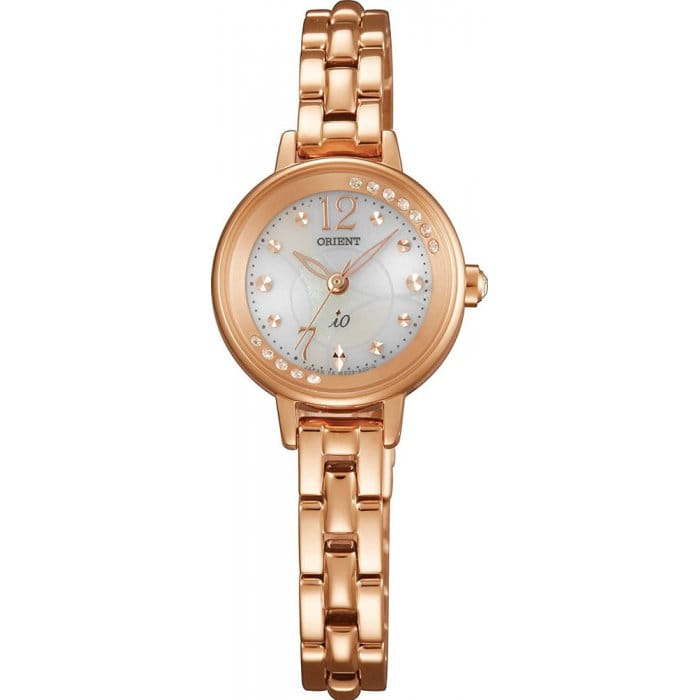 Часы на солнечной батарее; WR 50; Женские; Минеральное стекло; Браслет и корпус из нержавеющей стали с покрытием розовое золото.