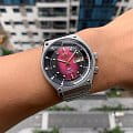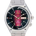 Часы Orient RA-AA0B02R — это идеальное сочетание ретро-эстетики и современных технологий. Корпус из нержавеющей стали диаметром 41,7 мм дополнен внутренним вращающимся БезелемБезельВнешний ободок, закрепляющий стекло. В спортивных часах так называется поворотное кольцо с делениями на циферблате, выполняет роль таймера – замеряет отрезки времени на шкале. Неподвижный безель – элемент декора. Однонаправленно вращающийся безель на дайверских часах позволяет фиксировать моменты погружения и выныривания на поверхность., который управляется заводной головкой на позиции «4 часа». Градиентный красный циферблат с золотистыми люминесцентными стрелками и меткамиЛюминесцентное покрытиеПозволяет считывать показания времени в темноте. Производители наносят на стрелки, часовые индексы, безель или поверхность циферблата светонакопительный состав, дающий холодное свечение. обеспечивает превосходную читаемость и придаёт часам выразительный характер. Автоматический механизм Orient Calibre F6922 поддерживает ручной завод и функцию остановки секундной стрелки, обеспечивая высокую точность и удобство настройки времени. Запас хода до 40 часов делает эти часы удобными в повседневном использовании. На отметке «3 часа» расположены индикаторы даты и дня недели, что добавляет практичности. Минеральное стеклоМинеральное стеклоМинеральное стекло представляет собой искусственно выращенный минерал кварца. Такое стекло отличается особой устойчивостью к повреждениям и царапинам. Уступает по некоторым качествам сапфировому стеклу. защищает циферблат от царапин, сохраняя его первозданный вид. Водонепроницаемость до 50 метров обеспечивает защиту от случайных брызг. Браслет из нержавеющей стали с раскладной застёжкой обеспечивает комфорт и надёжность фиксации. Orient RA-AA0B02R19B — это идеальный выбор для тех, кто ценит стиль, функциональность и надёжность.