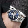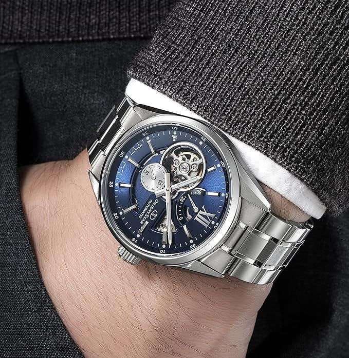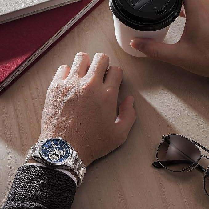 Мужские японские механические часы Orient Star RE-AV0004L представляют собой воплощение истинного мастерства и безупречного стиля. Они оснащены сапфировым стекломСапфировое стеклоПрочный и надёжный материал из кристалла сапфира синтетического происхождения, характеризующийся особой твёрдостью и устойчивостью к царапинам и повреждениям., которое отличается высокой устойчивостью к царапинам и гарантирует чёткую видимость циферблата в любых условиях. Корпус часов выполнен из прочной нержавеющей стали, что придаёт им надёжность и долговечность. Заводная головка имеет аккуратную рифлёную поверхность, облегчающую регулировку времени и даты. Задняя крышка корпуса выполнена прозрачной, позволяя насладиться красотой работающего механизма. Циферблат, созданный по технологии Sunray («солнечные лучи»), излучает мягкое сияние, плавно переходящее от центра к краям. Метки представлены тонкими штрихами и двумя крупными римскими цифрами, расположенными на позициях «VI» и «XII», что придаёт часам классический и элегантный вид. Стрелки покрыты люминесцентным составомЛюминесцентное покрытиеПозволяет считывать показания времени в темноте. Производители наносят на стрелки, часовые индексы, безель или поверхность циферблата светонакопительный состав, дающий холодное свечение., который обеспечивает отличное считывание времени даже в тёмных условиях. Стальной браслет, соединённый с корпусом, оборудован раскладной застёжкойРаскладная застёжкаТакой тип застёжки используется только на браслетах из металла. Она никогда не раскрывается полностью, происходит разделение на 2 и более частей. Раскладывающая застёжка снизит вероятность потери часов к минимуму., гарантируя комфортное ношение и надёжную фиксацию на запястье. Водонепроницаемость часов достигает уровня 100 метров, что позволяет использовать их во время плавания и других активных водных мероприятий без риска повреждения. Эти часы сочетают в себе традиционное японское качество, современный дизайн и высокую функциональность, делая их отличным выбором для мужчин, ценящих точность, стиль и надёжность.