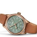 Многокомпонентный бронзовый корпус, стальная задняя крышка корпуса. Сапфировое стеклоСапфировое стеклоПрочный и надёжный материал из кристалла сапфира синтетического происхождения, характеризующийся особой твёрдостью и устойчивостью к царапинам и повреждениям., выпуклое с обеих сторон, внутреннее антибликовое покрытие. Нержавеющая сталь, завинчивающаяся прозрачная задняя крышка из минерального стеклаМинеральное стеклоМинеральное стекло представляет собой искусственно выращенный минерал кварца. Такое стекло отличается особой устойчивостью к повреждениям и царапинам. Уступает по некоторым качествам сапфировому стеклу.. Стрелки с люминесцентным покрытиемЛюминесцентное покрытиеПозволяет считывать показания времени в темноте. Производители наносят на стрелки, часовые индексы, безель или поверхность циферблата светонакопительный состав, дающий холодное свечение.. Кожаный ремень.