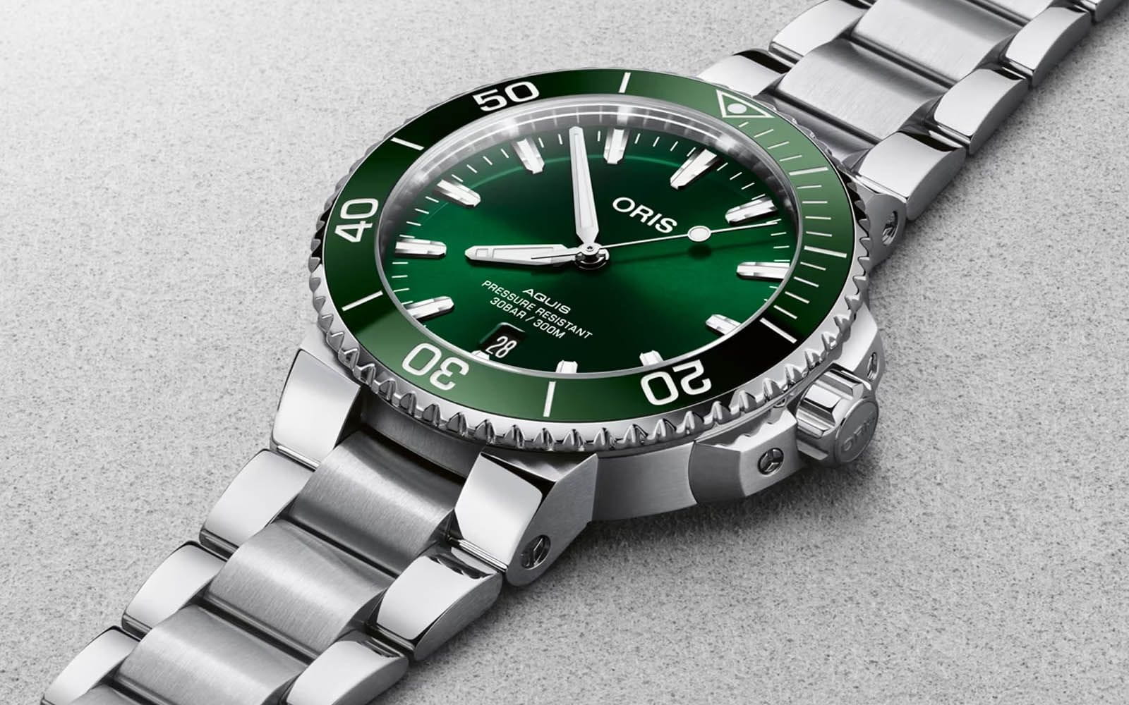 Швейцарские мужские часы ORIS AQUIS — это идеальное сочетание элегантного дизайна и профессиональных характеристик для активного образа жизни. Модель 01 733 7766 4157-07 8 22 05PEB из коллекции AQUIS создана для тех, кто ценит точность, надежность и стиль. Корпус диаметром 41.5 мм изготовлен из высококачественной нержавеющей стали с керамическим ободком, на котором расположена минутная шкала. Циферблат защищен выпуклым сапфировым стеклом с антибликовым покрытиемСапфировое стеклоПрочный и надёжный материал из кристалла сапфира синтетического происхождения, характеризующийся особой твёрдостью и устойчивостью к царапинам и повреждениям., обеспечивающим превосходную видимость в любых условиях освещения. Завинчивающаяся прозрачная задняя крышка из минерального стекла открывает вид на механизм, а завинчивающаяся заводная головка гарантирует повышенную водонепроницаемость. Механизм Oris 733 — это автоматический механизм с автоподзаводом, работающий от движения руки. Запас хода составляет 38 часов. Часы оснащены центральной секундной стрелкой и окошком даты в положении «6 часов», что делает их функциональными для повседневного использования. Стрелки и индексы на циферблате имеют люминесцентное покрытиеЛюминесцентное покрытиеПозволяет считывать показания времени в темноте. Производители наносят на стрелки, часовые индексы, безель или поверхность циферблата светонакопительный состав, дающий холодное свечение., позволяющее легко определять время даже в темноте. Минутные маркеры по внешнему ободу и светящиеся индексы создают четкую и удобную для восприятия компоновку. Браслет из нержавеющей стали шириной 22 мм оснащен надежной раскладной застёжкойРаскладная застёжкаТакой тип застёжки используется только на браслетах из металла. Она никогда не раскрывается полностью, происходит разделение на 2 и более частей. Раскладывающая застёжка снизит вероятность потери часов к минимуму., которая обеспечивает комфортную фиксацию на запястье. Вращающийся в одном направлении безель с черным кольцом помогает точно отслеживать продолжительность погружений. Часы обладают впечатляющей водонепроницаемостью до 30 бар (300 метров), что делает их идеальными для плавания, ныряния и погружений с аквалангом.