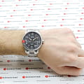 Мужские наручные часы Oris 01 752 7760 4063-07 8 22 08P из коллекции Big Crown ProPilot объединяют в себе функциональность пилотских часов и стильный дизайн. Модель обладает многокомпонентным корпусом диаметром 44 мм, изготовленным из нержавеющей стали с завинчивающейся задней крышкой, что обеспечивает высокую устойчивость к внешним воздействиям и водонепроницаемость до 100 метров. Браслет выполнен из нержавеющей стали с раскладной застежкой Раскладной замокРаскладной замокДанный вариант застежки используется только на часах с металлическим браслетом. Отличительная особенность такого крепления в том, что длина браслета становится универсальной и вы можете самостоятельно отрегулировать нужный вам размер – застежка просто двигается по браслету часов., гарантирующей комфортное ношение и безопасность. Черный циферблат оснащен крупными индексами и стрелками с люминесцентным покрытиемЛюминесцентное покрытиеПозволяет считывать показания времени в темноте. Производители наносят на стрелки, часовые индексы, безель или поверхность циферблата светонакопительный состав, дающий холодное свечение., которые обеспечивают отличную видимость в любых условиях. Также присутствуют окошко дня недели и даты в положении 3 часа. Для защиты применяется сапфировое стеклоСапфировое стеклоПрочный и надёжный материал из кристалла сапфира синтетического происхождения, характеризующийся особой твёрдостью и устойчивостью к царапинам и повреждениям., обеспечивающее исключительную защиту от царапин и оптимальный обзор времени. Часы работают на механическом механизме с автоподзаводом, который имеет запас хода около 38 часов. Модель является частью лимитированной серии с индивидуальной нумерацией, делая каждый экземпляр уникальным. Эти часы идеально подходят для тех, кто ценит точность, надежность и стильный дизайн, будь то повседневная носка или специальные мероприятия.