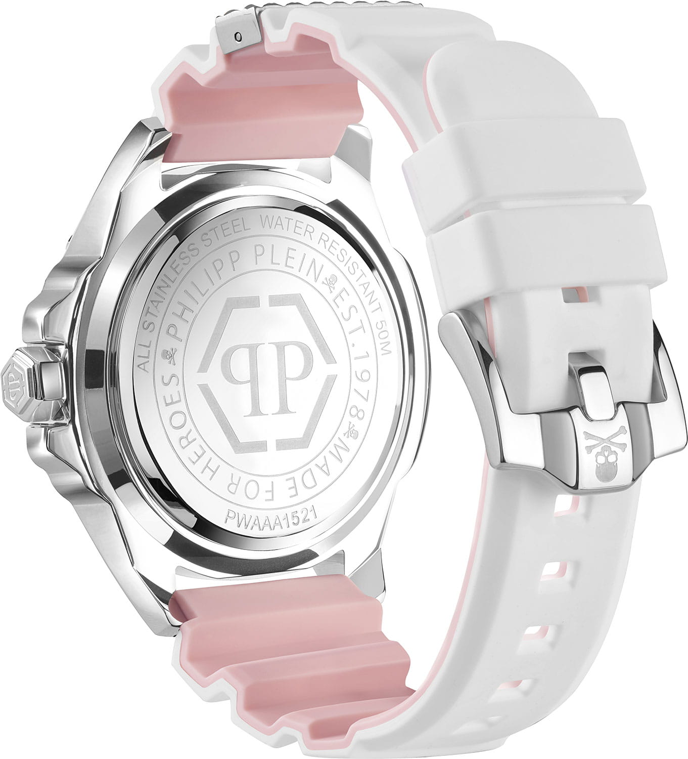 Яркие мужские часы Philipp Plein The Skull PWAAA1521, кварцевый механизм с высокой точностью. Класс водозащиты: 50 метров, позволит защитить корпус от случайных брызг или капель дождя. Корпус часов изготовлен из стали, цвета.
