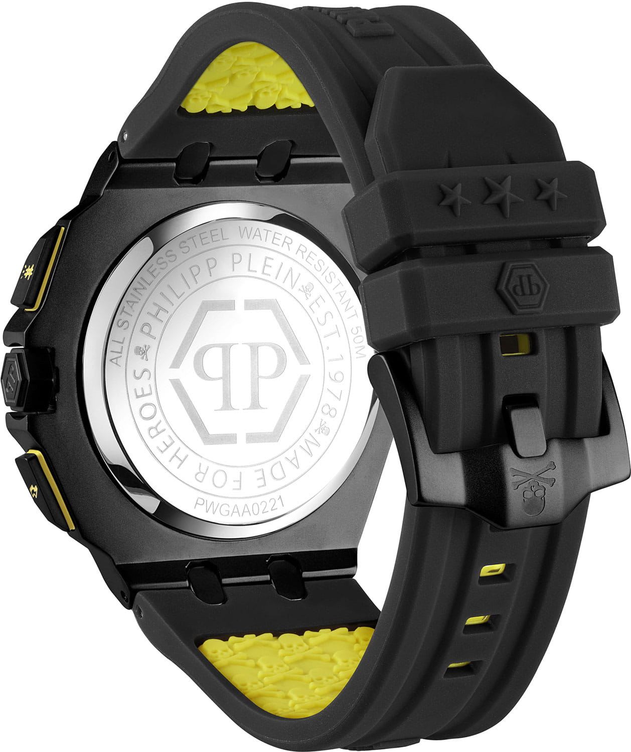 Яркие мужские часы с хронографом Philipp Plein Extreme PWGAA0221, кварцевый механизм с высокой точностью. Класс водозащиты: 50 метров, позволит защитить корпус от случайных брызг или капель дождя. Корпус часов изготовлен из стали, цвета.