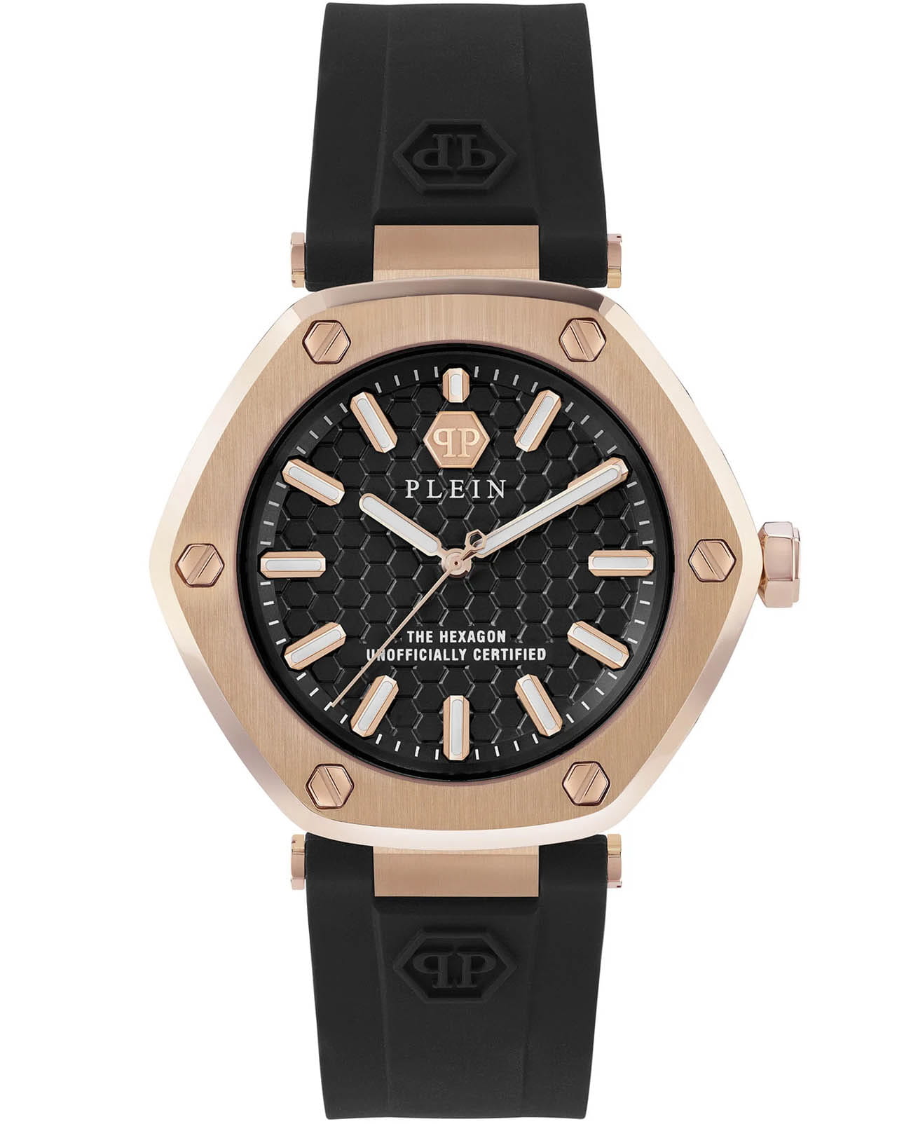 Стильные женские часы Philipp Plein The Hexagon PW1BA0323 с надежным кварцевым механизмом. Корпус часов изготовлен из нержавеющей стали с IP-покрытиемIP-покрытиеМетод ионного напыления. Демонстрирует повышенную устойчивость к истиранию, окислению и химическим веществам. Под воздействием высокого давления и температуры около 1500°C молекулы металла надёжно соединяются с частицами корпуса часов.. Минеральное стеклоМинеральное стеклоМинеральное стекло представляет собой искусственно выращенный минерал кварца. Такое стекло отличается особой устойчивостью к повреждениям и царапинам. Уступает по некоторым качествам сапфировому стеклу. устойчивое к мелким механическим повреждениям. Влагозащита: 50 метров, позволит защитить корпус от случайных брызг или капель дождя. Стрелки и метки с люминесцентным покрытиемЛюминесцентное покрытиеПозволяет считывать показания времени в темноте. Производители наносят на стрелки, часовые индексы, безель или поверхность циферблата светонакопительный состав, дающий холодное свечение..