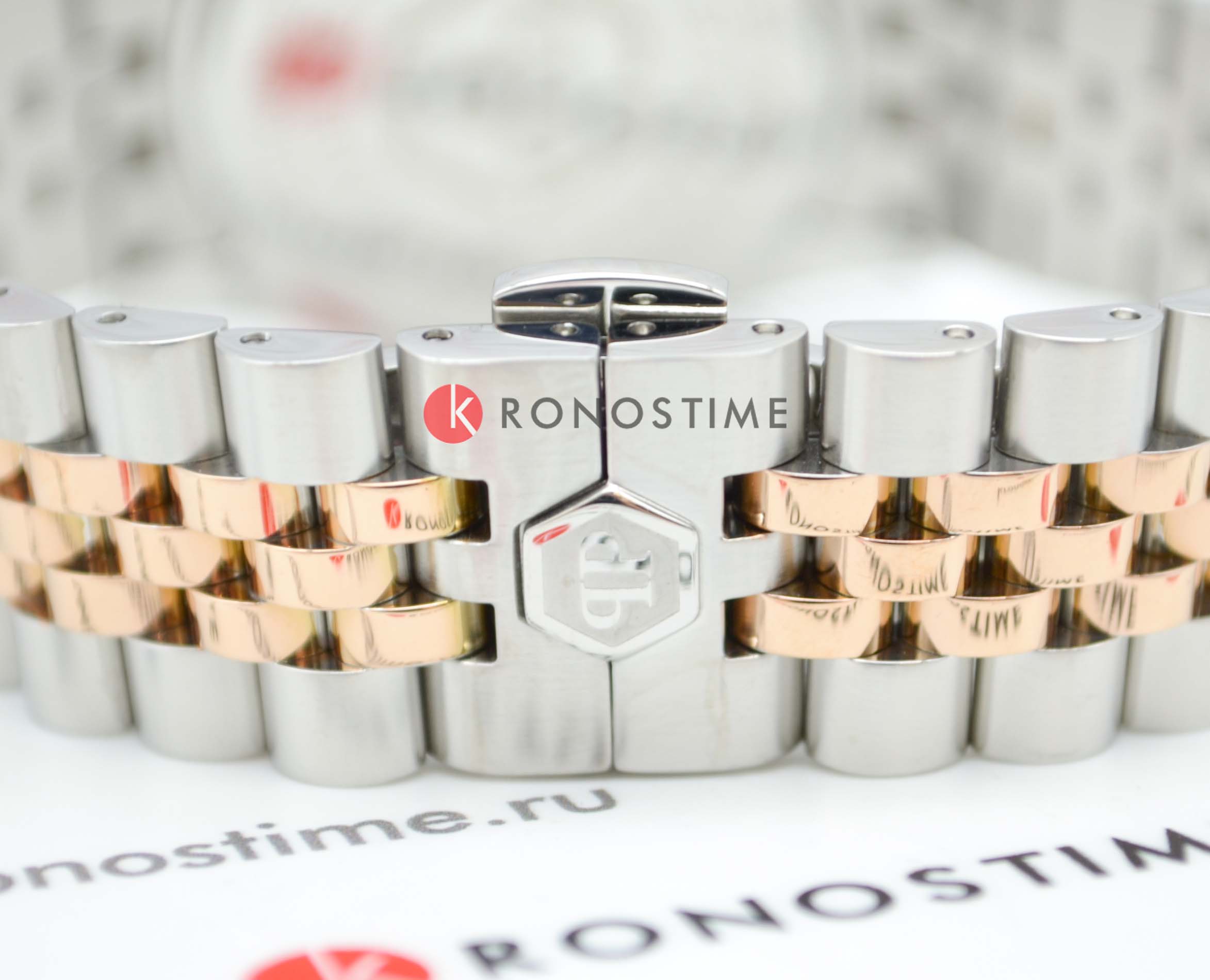 Стильные женские часы Philipp Plein Street Couture PW2BA0423 с надежным кварцевым механизмом. Корпус часов изготовлен из нержавеющей стали. Минеральное стеклоМинеральное стеклоМинеральное стекло представляет собой искусственно выращенный минерал кварца. Такое стекло отличается особой устойчивостью к повреждениям и царапинам. Уступает по некоторым качествам сапфировому стеклу. устойчивое к мелким механическим повреждениям. Влагозащита: 50 метров, позволит защитить корпус от случайных брызг или капель дождя. Стрелки и метки с люминесцентным покрытиемЛюминесцентное покрытиеПозволяет считывать показания времени в темноте. Производители наносят на стрелки, часовые индексы, безель или поверхность циферблата светонакопительный состав, дающий холодное свечение.. Стальной браслет на застёжке-бабочке с кнопкамиЗастёжка "бабочка"Такой вид застёжки дополняется предохранителями, помогающими избежать случайного раскрытия браслета. Обладают изящным исполнением. . БезельБезельВнешний ободок, закрепляющий стекло. В спортивных часах так называется поворотное кольцо с делениями на циферблате, выполняет роль таймера – замеряет отрезки времени на шкале. Неподвижный безель – элемент декора. Однонаправленно вращающийся безель на дайверских часах позволяет фиксировать моменты погружения и выныривания на поверхность. с IP-покрытиемIP-покрытиеМетод ионного напыления. Демонстрирует повышенную устойчивость к истиранию, окислению и химическим веществам. Под воздействием высокого давления и температуры около 1500°C молекулы металла надёжно соединяются с частицами корпуса часов..