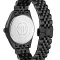 Philipp Plein Date Superlative PWMFA1125 - часы в современном дизайне несомненно добавят вам выразительности и станут главным акцентом вашего стильного образа. Мужские кварцевые часы с высокой точностью. Круглый стальной корпус с PVD-покрытиемPVDУльтратонкое покрытие наносится в технике вакуумного напыления, сочетает в себе нитрид титана особой прочности со слоем золота или оксида хрома. Несёт в себе декоративную или защитную функцию. черного цвета, диаметром 41 мм. Циферблат декорирован логотипом бренда в положении 12 часов, метки в виде штрихов. Минеральное стеклоМинеральное стеклоМинеральное стекло представляет собой искусственно выращенный минерал кварца. Такое стекло отличается особой устойчивостью к повреждениям и царапинам. Уступает по некоторым качествам сапфировому стеклу. защищает циферблат от царапин. Люминесцентное покрытиеЛюминесцентное покрытиеПозволяет считывать показания времени в темноте. Производители наносят на стрелки, часовые индексы, безель или поверхность циферблата светонакопительный состав, дающий холодное свечение. стрелок позволит следить за временем даже в полной темноте. Окошко даты находится в положении 3 часа. Стальной браслет с PVD-покрытиемPVDУльтратонкое покрытие наносится в технике вакуумного напыления, сочетает в себе нитрид титана особой прочности со слоем золота или оксида хрома. Несёт в себе декоративную или защитную функцию. на застёжке-бабочке с кнопкамиЗастёжка "бабочка"Такой вид застёжки дополняется предохранителями, помогающими избежать случайного раскрытия браслета. Обладают изящным исполнением. , обеспечивает комфортное ношение. Граненая заводная головка. Влагозащита: 50 метров, позволит защитить корпус от случайных брызг или капель дождя. Идеальный аксессуар для тех, кто ценит индивидуальность и не боится выделяться из толпы.