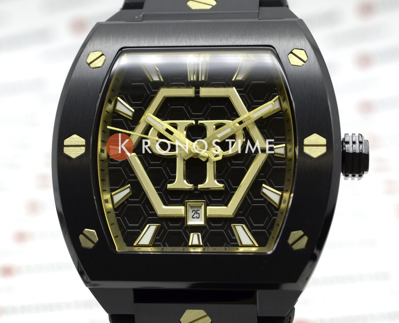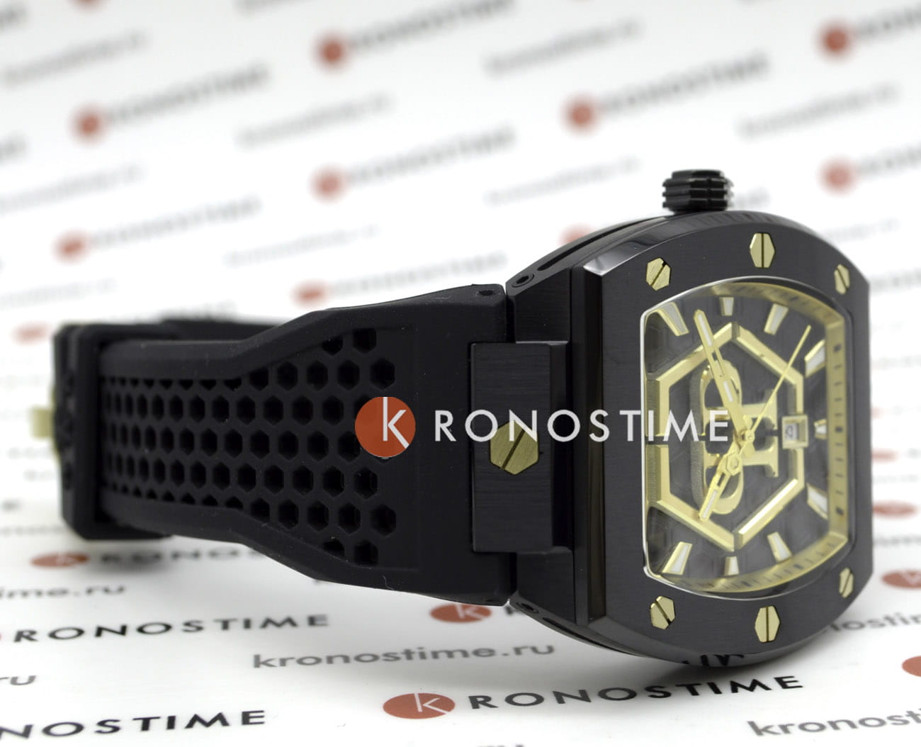 ​​Часы Philipp Plein PWPUA0224 из коллекции The Hexagon сочетают элегантность и функциональность.​​ ​​Корпус диаметром 44 мм выполнен из нержавеющей стали с IP-покрытиемIP-покрытиеМетод ионного напыления. Демонстрирует повышенную устойчивость к истиранию, окислению и химическим веществам. Под воздействием высокого давления и температуры около 1500°C молекулы металла надёжно соединяются с частицами корпуса часов., придающим изделию роскошный вид.​​ ​​