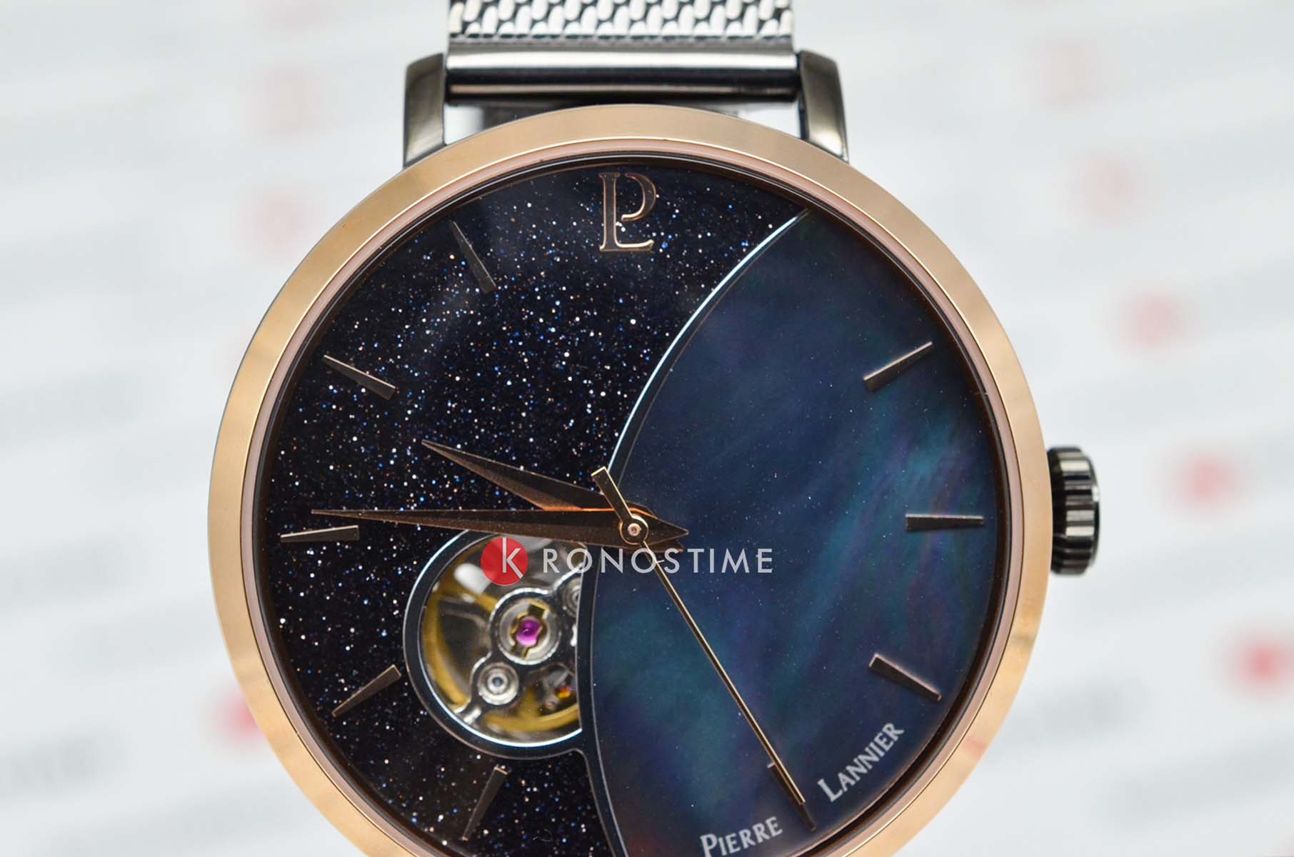 Женские механические часы с автоподзаводом Pierre Lannier Celeste 302F789. Минеральное стеклоМинеральное стеклоМинеральное стекло представляет собой искусственно выращенный минерал кварца. Такое стекло отличается особой устойчивостью к повреждениям и царапинам. Уступает по некоторым качествам сапфировому стеклу. устойчивое к мелким механическим повреждениям. Центральные часовая, минутная и секундная стрелки. Корпус и браслет выполнен из нержавеющей стали с IP-покрытиемIP-покрытиеМетод ионного напыления. Демонстрирует повышенную устойчивость к истиранию, окислению и химическим веществам. Под воздействием высокого давления и температуры около 1500°C молекулы металла надёжно соединяются с частицами корпуса часов.. Водостойкость: 30 метров, позволит защитить корпус от случайных брызг или капель дождя. Прозрачная задняя крышка. Браслет миланского плетения с раскладной застёжкойРаскладная застёжкаТакой тип застёжки используется только на браслетах из металла. Она никогда не раскрывается полностью, происходит разделение на 2 и более частей. Раскладывающая застёжка снизит вероятность потери часов к минимуму..