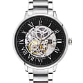 Мужские механические часы с автоподзаводом Pierre Lannier Automatic 317B131. Минеральное стеклоМинеральное стеклоМинеральное стекло представляет собой искусственно выращенный минерал кварца. Такое стекло отличается особой устойчивостью к повреждениям и царапинам. Уступает по некоторым качествам сапфировому стеклу. устойчивое к мелким механическим повреждениям. Центральные часовая, минутная и секундная стрелки. Корпус и браслет выполнены из нержавеющей стали. Водостойкость: 50 метров, позволит защитить корпус от случайных брызг или капель дождя. Стрелки с люминесцентным покрытиемЛюминесцентное покрытиеПозволяет считывать показания времени в темноте. Производители наносят на стрелки, часовые индексы, безель или поверхность циферблата светонакопительный состав, дающий холодное свечение.. Черный скелетонизированный циферблат. Браслет на раскладной застёжкеРаскладная застёжкаТакой тип застёжки используется только на браслетах из металла. Она никогда не раскрывается полностью, происходит разделение на 2 и более частей. Раскладывающая застёжка снизит вероятность потери часов к минимуму.. Прозрачная задняя крышка.