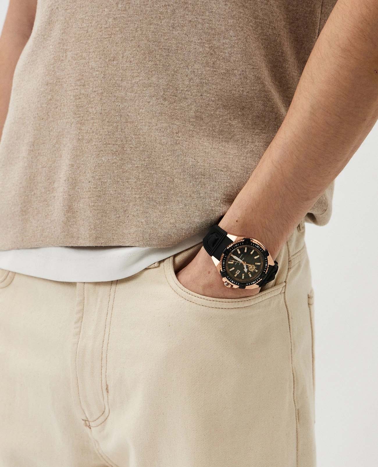 Мотив тигра, изображённый на выступах в верхней и нижней части корпуса, придаёт часам оригинальный и стильный вид.