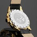 Poljot 6S21.746034 — классические мужские часы, в которых традиции российского часового мастерства сочетаются с современным дизайном. Корпус из нержавеющей стали с PVD-покрытиемPVDУльтратонкое покрытие наносится в технике вакуумного напыления, сочетает в себе нитрид титана особой прочности со слоем золота или оксида хрома. Несёт в себе декоративную или защитную функцию. подчёркивает солидность и надёжность модели, а насыщенный циферблат с лучевой текстурой придаёт образу выразительность и глубину. Два дополнительных счётчика хронографаХронографФункция позволяет измерять отрезки времени с особой точностью: часы, минуты, секунды. Верным признаком хронографа является наличие на циферблате 3 дополнительных окошек-счётчиков. обеспечивают точное измерение интервалов времени, дополняя функциональность часов. Контрастные стрелки и метки с люминесцентным покрытиемЛюминесцентное покрытиеПозволяет считывать показания времени в темноте. Производители наносят на стрелки, часовые индексы, безель или поверхность циферблата светонакопительный состав, дающий холодное свечение. обеспечивают отличную читаемость даже в условиях слабого освещения. Прочное минеральное стеклоМинеральное стеклоМинеральное стекло представляет собой искусственно выращенный минерал кварца. Такое стекло отличается особой устойчивостью к повреждениям и царапинам. Уступает по некоторым качествам сапфировому стеклу. защищает циферблат от царапин, а ремешок из натуральной кожи с классической пряжкой гарантирует комфорт и элегантную посадку на запястье. Poljot — это надёжный спутник современного мужчины, объединяющий точность, стиль и характер.