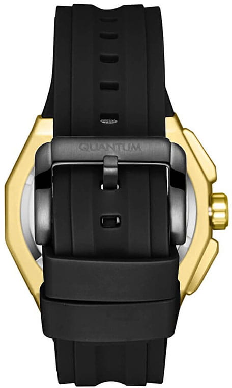 Мужские кварцевые часы Quantum из коллекции Hunter — круглый корпус размером 47 мм из нержавеющей стали с PVD-покрытиемPVDУльтратонкое покрытие наносится в технике вакуумного напыления, сочетает в себе нитрид титана особой прочности со слоем золота или оксида хрома. Несёт в себе декоративную или защитную функцию., оснащённый функциями хронографаХронографФункция позволяет измерять отрезки времени с особой точностью: часы, минуты, секунды. Верным признаком хронографа является наличие на циферблате 3 дополнительных окошек-счётчиков. и окошком даты. Стекло — минеральноеМинеральное стеклоМинеральное стекло представляет собой искусственно выращенный минерал кварца. Такое стекло отличается особой устойчивостью к повреждениям и царапинам. Уступает по некоторым качествам сапфировому стеклу. с антибликовым покрытием. Механизм — японский кварцевый Seiko. Водонепроницаемость 100 м. Ремешок — чёрный силиконовый на стандартной застёжке. Идеальный выбор для тех, кто ценит турецкий дизайн и функциональный спортивный стиль.