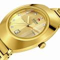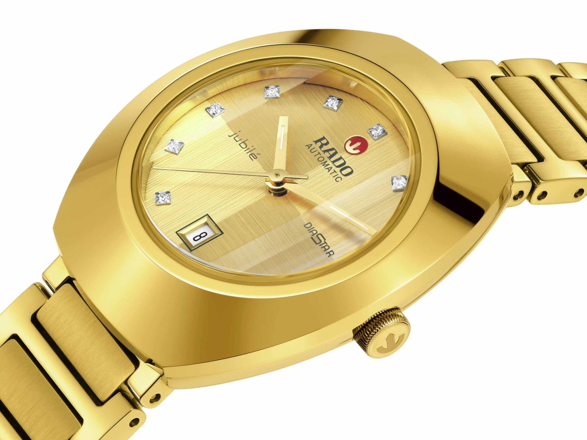Женские механические часы с автоподзаводом Rado из коллекции Diastar Original — это икона швейцарского мастерства и инноваций. Корпус диаметром 30 мм и толщиной 11 мм выполнен из нержавеющей стали с PVD-покрытиемPVDУльтратонкое покрытие наносится в технике вакуумного напыления, сочетает в себе нитрид титана особой прочности со слоем золота или оксида хрома. Несёт в себе декоративную или защитную функцию. жёлтого золота. БезельБезельВнешний ободок, закрепляющий стекло. В спортивных часах так называется поворотное кольцо с делениями на циферблате, выполняет роль таймера – замеряет отрезки времени на шкале. Неподвижный безель – элемент декора. Однонаправленно вращающийся безель на дайверских часах позволяет фиксировать моменты погружения и выныривания на поверхность. изготовлен из Ceramos™CeramosМатериал являет собой инновационное сочетание высокотехнологичной керамики и сплава металла. Он объединяет керамическую устойчивость к царапинам и металлический роскошный блеск. с покрытием жёлтого золота. Циферблат жёлтого цвета с двунаправленной шлифовкой украшен 11 бриллиантами и центральным подвижным якорем — фирменным элементом дизайна. Циферблат защищён фасетированным сапфировым стекломСапфировое стеклоПрочный и надёжный материал из кристалла сапфира синтетического происхождения, характеризующийся особой твёрдостью и устойчивостью к царапинам и повреждениям. с антибликовым покрытиемАнтибликовое покрытиеСлой оксида металла в 0,13-0,3 микрон, благодаря которому стекло часов не бликует и не отражает свет. Антибликовое покрытие уменьшает отражение света в 10 раз, обеспечивая отличную читаемость показателей циферблата. на внутренней стороне. Стрелки золотистого цвета с люминесцентным покрытиемЛюминесцентное покрытиеПозволяет считывать показания времени в темноте. Производители наносят на стрелки, часовые индексы, безель или поверхность циферблата светонакопительный состав, дающий холодное свечение. Super-Luminova®, обеспечивающим отличную читаемость в любых условиях. Механизм — автоматический калибр R586 с пружиной Nivachron™Nivachron™Специально разработанный инновационный сплав Nivachron™ повышает устойчивость часов к воздействию магнитных полей., отрегулированный в пяти положениях, с запасом хода 48 часов. Окошко даты расположено в положении 6 часов. Часы оснащены стальным браслетом с PVD-покрытиемPVDУльтратонкое покрытие наносится в технике вакуумного напыления, сочетает в себе нитрид титана особой прочности со слоем золота или оксида хрома. Несёт в себе декоративную или защитную функцию. жёлтого золота и застёжкой «бабочка» с кнопкамиЗастёжка "бабочка"Такой вид застёжки дополняется предохранителями, помогающими избежать случайного раскрытия браслета. Обладают изящным исполнением. из стали с PVD-покрытиемPVDУльтратонкое покрытие наносится в технике вакуумного напыления, сочетает в себе нитрид титана особой прочности со слоем золота или оксида хрома. Несёт в себе декоративную или защитную функцию.. Водонепроницаемость 100 м позволяет использовать часы для плавания. Идеальный выбор для тех, кто ценит роскошь, точность и смелый дизайн.