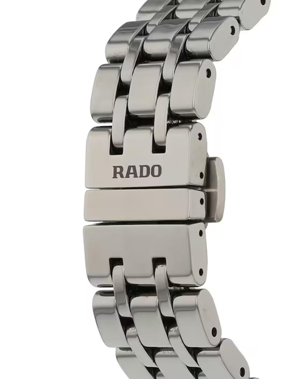 Женские швейцарские механические часы с автоподзаводом Rado Coupole R14064922. Корпус и браслет часов изготовлены из высокотехнологичной плазменной керамикиВысокотехнологичная плазменная керамикаИнновационный материал, технология запатентована. Выплавление керамики осуществляется в печи при 20 000 °C, белоснежный материал под воздействием ультравысокой температуры приобретает уникальный блеск, присущий металлам.. Сапфировое стеклоСапфировое стеклоПрочный и надёжный материал из кристалла сапфира синтетического происхождения, характеризующийся особой твёрдостью и устойчивостью к царапинам и повреждениям. устойчивое к мелким механическим повреждениям. Браслет на застёжке-бабочке с кнопкамиЗастёжка "бабочка"Такой вид застёжки дополняется предохранителями, помогающими избежать случайного раскрытия браслета. Обладают изящным исполнением. . Класс водозащиты: 50 метров, позволит защитить корпус от случайных брызг или капель дождя. Окошко даты находится в положении 6 часов.
