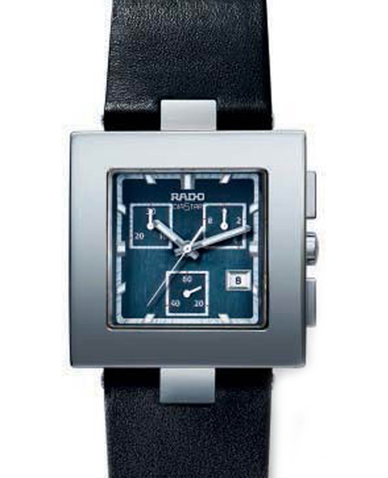 Мужские швейцарские часы-хронографХронографФункция позволяет измерять отрезки времени с особой точностью: часы, минуты, секунды. Верным признаком хронографа является наличие на циферблате 3 дополнительных окошек-счётчиков. Rado DiaStar R18683205. Сапфировое стеклоСапфировое стеклоПрочный и надёжный материал из кристалла сапфира синтетического происхождения, характеризующийся особой твёрдостью и устойчивостью к царапинам и повреждениям. устойчивое к мелким механическим повреждениям. Корпус часов изготовлен из нержавеющей стали. Окошко даты находится в положении 4 часа. Стрелки с люминесцентным покрытиемЛюминесцентное покрытиеПозволяет считывать показания времени в темноте. Производители наносят на стрелки, часовые индексы, безель или поверхность циферблата светонакопительный состав, дающий холодное свечение.. Класс водозащиты: 30 метров, позволит защитить корпус от случайных брызг или капель дождя. Кожаный ремешок на стандартной застежке.