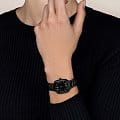 Для удобства чтения времени в темных условиях стрелки и часовые метки снабжены яркой люминесцентной подсветкойЛюминесцентное покрытиеПозволяет считывать показания времени в темноте. Производители наносят на стрелки, часовые индексы, безель или поверхность циферблата светонакопительный состав, дающий холодное свечение., обеспечивая четкость и контрастность отображаемых данных. Циферблат этих часов дополнительно защищен плоским сапфировым стекломСапфировое стеклоПрочный и надёжный материал из кристалла сапфира синтетического происхождения, характеризующийся особой твёрдостью и устойчивостью к царапинам и повреждениям., которое славится своими антибликовыми свойствами и высокой стойкостью к появлению царапин, что позволяет сохранить первозданный внешний вид изделия на долгие годы. Браслет из титана и высокотехнологичной плазменной керамикиВысокотехнологичная плазменная керамикаИнновационный материал, технология запатентована. Выплавление керамики осуществляется в печи при 20 000 °C, белоснежный материал под воздействием ультравысокой температуры приобретает уникальный блеск, присущий металлам. на .