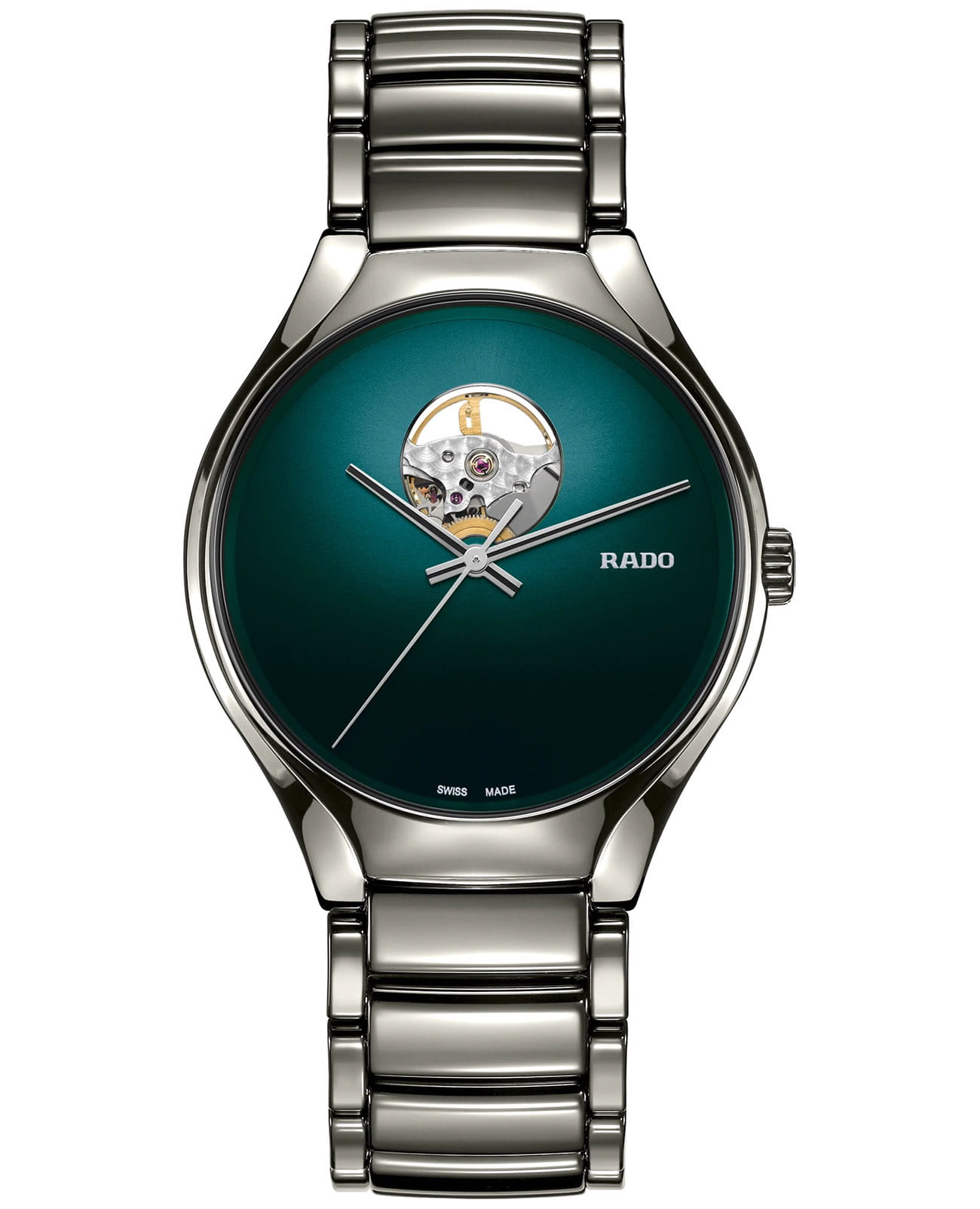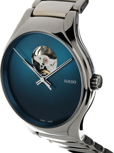 Наручные часы с минималистичным бирюзовым циферблатом выполнены в классическом дизайне, что делает модель актуальным вариантом для делового, повседневного, вечернего стиля одежды. Швейцарский пружинный калибр с автоподзаводом ETA C07.631 отличается увеличенным запасом хода до 80 часов. Сквозь круглое окошко в циферблате прослеживается плавное движение деталей и шестерёнок механизма, украшенного узором «жемчужное зернение». Аксессуар полностью выполнен высокотехнологичной керамикиВысокотехнологичная керамикаИнновационный запатентованный Rado материал с гладкой или матовой поверхностью. Керамика за счёт кристаллической структуры обладает повышенной устойчивостью от возникновения царапин. Материал способен принимать температуру тела человека, обеспечивая невероятный комфорт при ношении., что обеспечивает комфортное ношение. Сапфировое стекло имеет антибликовое покрытие, уменьшающее отражение света в 10 раз для лучшей читаемости показателей. Водостойкость WR 50 позволяет часам выдерживать дождь, душ, мойку машины. Диаметр корпуса: 40 мм.