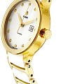 Аксессуар являет собой сочетание классической красоты и современного дизайна, отражающего минимализм. Его безупречная работа обеспечивается за счёт швейцарского автоматического механизма ETA 2671 с 38-часовым запасом хода. Прозрачная задняя крышка позволяет прикоснуться к часовому искусству и понаблюдать за движением деталей. Сапфировое стекло. Инкрустация 12 бриллиантами в 0,025 карат. Браслет из стали 316L с золотистым PVD-покрытиемPVDУльтратонкое покрытие наносится в технике вакуумного напыления, сочетает в себе нитрид титана особой прочности со слоем золота или оксида хрома. Несёт в себе декоративную или защитную функцию. и высокотехнологичной керамикиВысокотехнологичная керамикаИнновационный запатентованный Rado материал с гладкой или матовой поверхностью. Керамика за счёт кристаллической структуры обладает повышенной устойчивостью от возникновения царапин. Материал способен принимать температуру тела человека, обеспечивая невероятный комфорт при ношении.. Водонепроницаемость 30 метров. . Окошко даты. Диаметр корпуса: 28 мм.