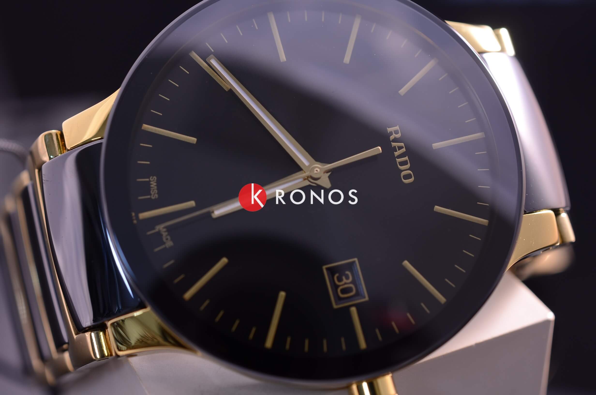 Традиционный круглый циферблат чёрного цвета с золотистыми стрелками и метками имеет узор «солнечные лучи», лаконичное исполнение делает аксессуар универсальным вариантом для любого события. Корпус и браслет выполнены из хирургической стали 316L, браслет сделан в сочетании с высокотехнологичной керамикойВысокотехнологичная керамикаИнновационный запатентованный Rado материал с гладкой или матовой поверхностью. Керамика за счёт кристаллической структуры обладает повышенной устойчивостью от возникновения царапин. Материал способен принимать температуру тела человека, обеспечивая невероятный комфорт при ношении.. В основе работы находится кварцевый механизм ETA 955.112 с высокой точностью хода. Сапфировое стекло устойчиво к образованию царапин на поверхности. Сохранение водонепроницаемости при давлении до 3 бар. PVD-покрытиеPVDУльтратонкое покрытие наносится в технике вакуумного напыления, сочетает в себе нитрид титана особой прочности со слоем золота или оксида хрома. Несёт в себе декоративную или защитную функцию. цвета «жёлтое золото». Отображение даты. Диаметр корпуса: 38 мм.