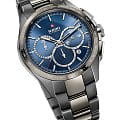 Наручные часы с синим циферблата дополнены счётчиками хронографаХронографФункция позволяет измерять отрезки времени с особой точностью: часы, минуты, секунды. Верным признаком хронографа является наличие на циферблате 3 дополнительных окошек-счётчиков. в контрастном исполнении, секундная стрелка имеет красный наконечник. Корпус модели сделан из революционной плазменной керамикиВысокотехнологичная плазменная керамикаИнновационный материал, технология запатентована. Выплавление керамики осуществляется в печи при 20 000 °C, белоснежный материал под воздействием ультравысокой температуры приобретает уникальный блеск, присущий металлам. и нержавеющей стали 316L, браслет объединяет плазменную керамику и материал CeramosCeramosМатериал являет собой инновационное сочетание высокотехнологичной керамики и сплава металла. Он объединяет керамическую устойчивость к царапинам и металлический роскошный блеск. . Высокая точность хода обеспечивается за счёт автоматического калибра ETA 2894-2 с резервом хода 45 часов, его работу можно понаблюдать через прозрачную заднюю крышку. Сапфировое стекло с антибликовой обработкой. Круглая апертура даты, секундомер, тахиметрТахиметрРазмеченная шкала, располагается на ободке или безеле часов. Тахиметр позволяет рассчитать скорость на определённом участке пути, расстояние измеряется в километрах или милях.. Водонепроницаемость до 10 бар. . Диаметр корпуса: 45 мм.