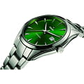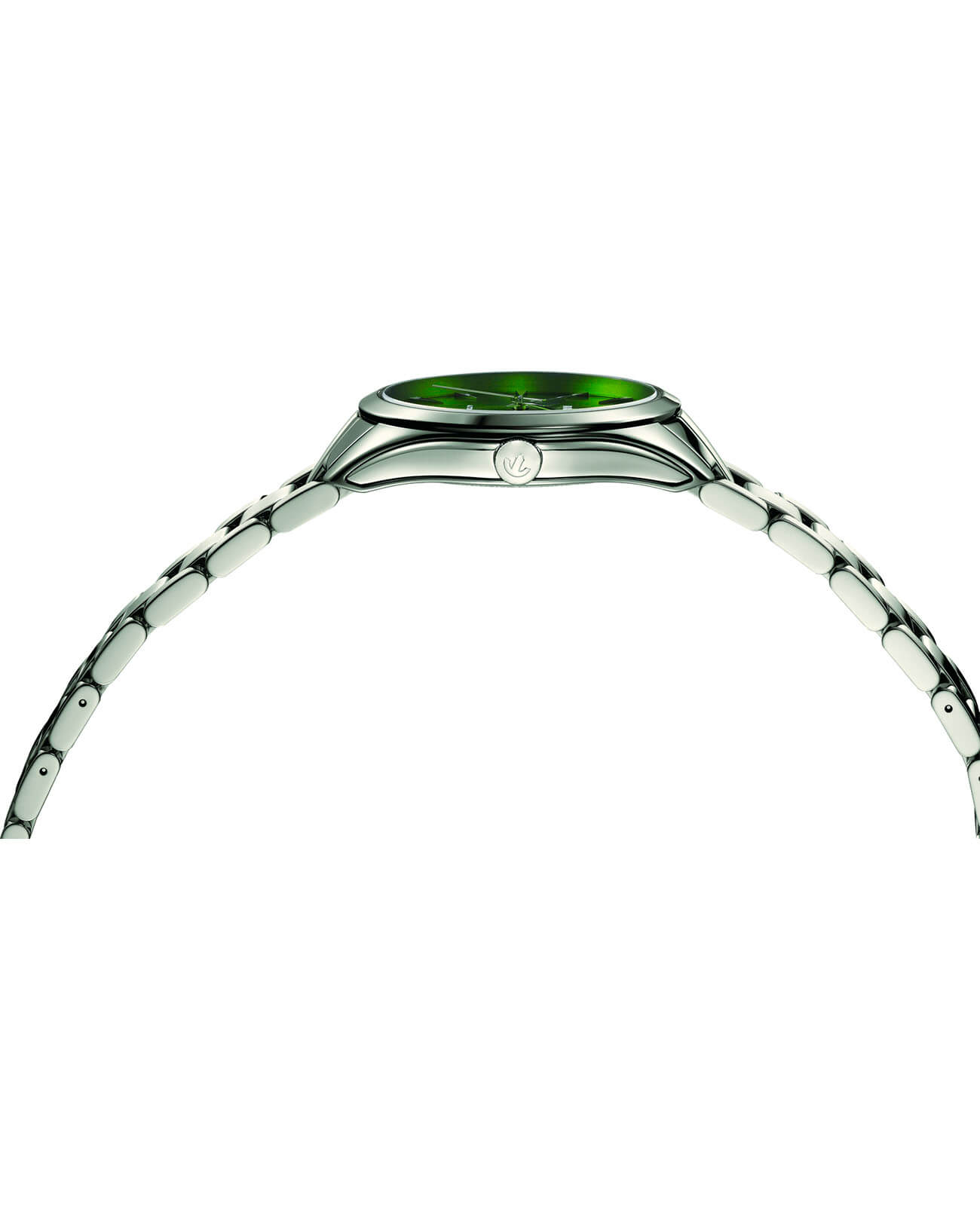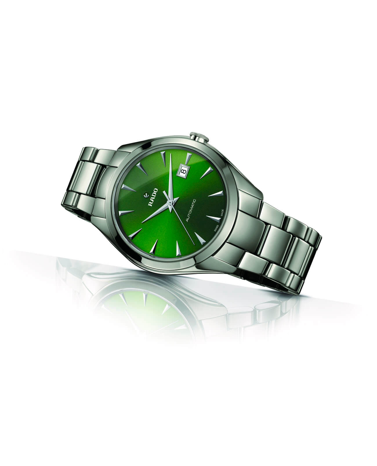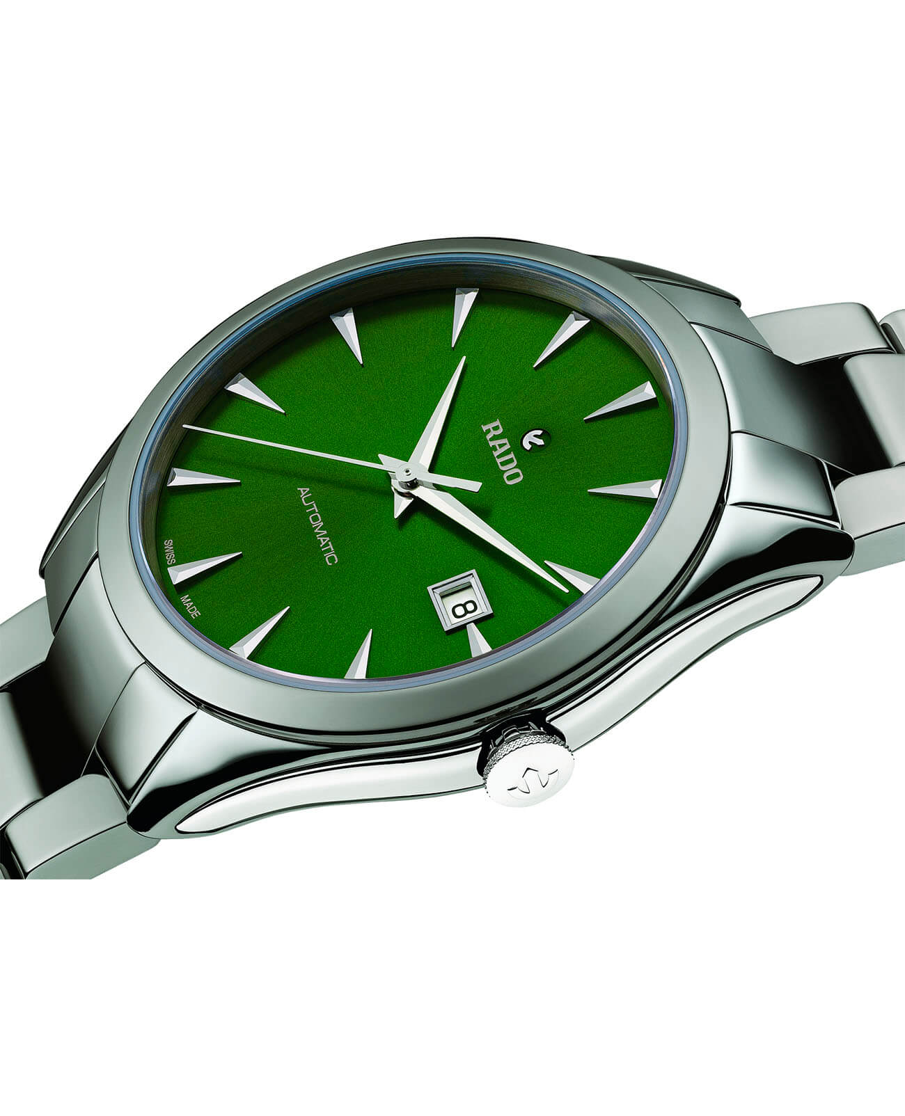 Стильная и лаконичная модель относится к премиальному сегменту. Дизайн отличается классическим обликом и истинной элегантностью, зелёный циферблат имеет узор «солнечные лучи». Браслет выполнен из плазменной керамикиВысокотехнологичная плазменная керамикаИнновационный материал, технология запатентована. Выплавление керамики осуществляется в печи при 20 000 °C, белоснежный материал под воздействием ультравысокой температуры приобретает уникальный блеск, присущий металлам., материал отличается надёжностью и долговечностью. Автоподзавод. Швейцарский автоматический механизм ETA C07.611 с увеличенным запасом хода до 80 часов. Выпуклое стекло из сапфира с антибликовой поверхностью. Прозрачная задняя крышка. Прямоугольная апертура даты. . Диаметр корпуса: 42 мм.