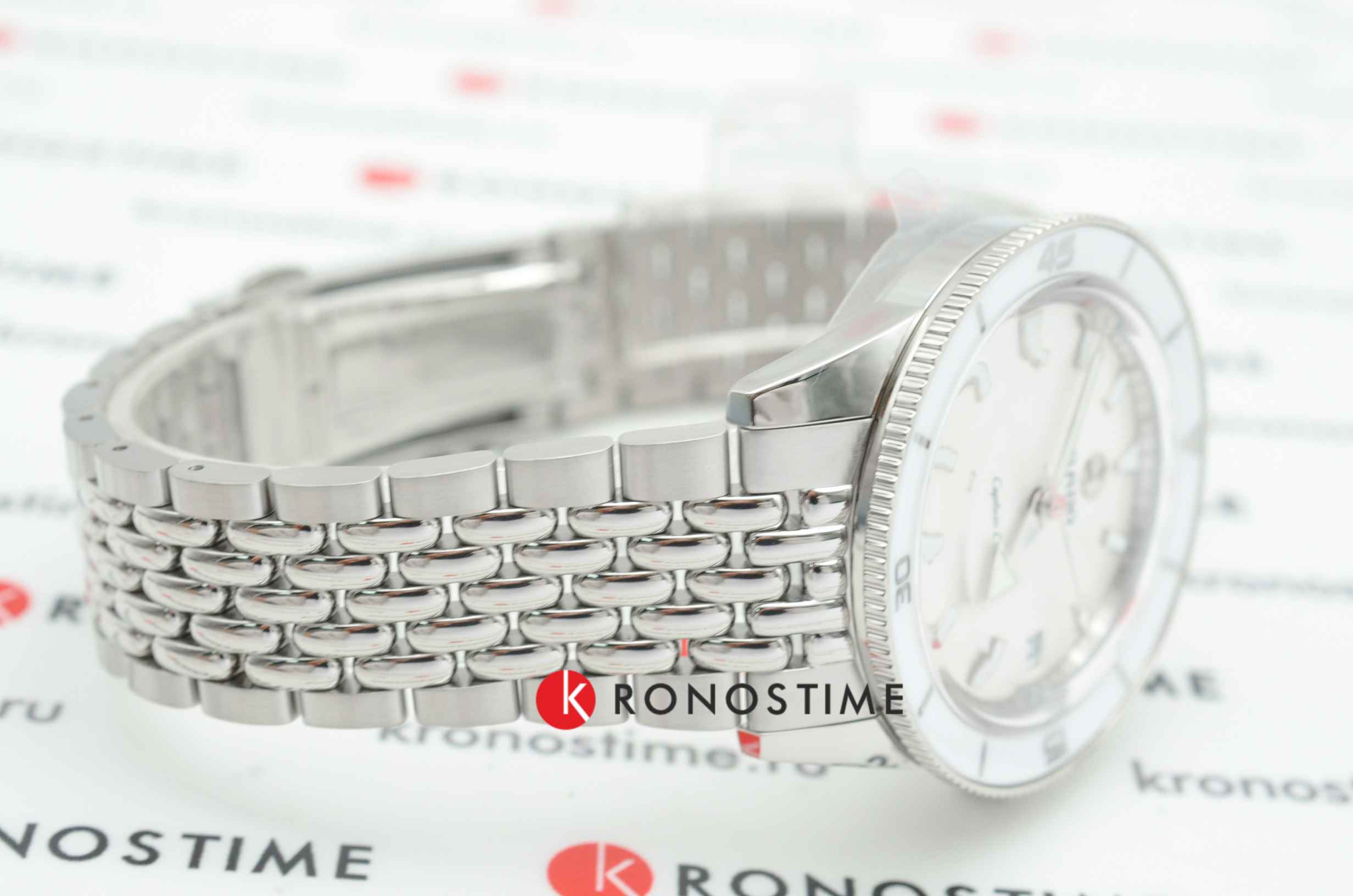 Брендовый аксессуар в серебристом исполнении дополнен винтажными деталями и оригинальными стрелками, выполненными в виде меча и стрелы. Премиальная модель с белым циферблатом идеальна для завершения образа солидного мужчины. Высокая точность хода обеспечивается за счёт швейцарского автоматического калибра ETA C07.611 с 80-часовым запасом хода. Завинчивающаяся задняя крышка. Антибликовое покрытие сапфирового стекла. Корпус и браслет из нержавеющей стали 316L, безельБезельВнешний ободок, закрепляющий стекло. В спортивных часах так называется поворотное кольцо с делениями на циферблате, выполняет роль таймера – замеряет отрезки времени на шкале. Неподвижный безель – элемент декора. Однонаправленно вращающийся безель на дайверских часах позволяет фиксировать моменты погружения и выныривания на поверхность. из высокотехнологичной керамикиВысокотехнологичная керамикаИнновационный запатентованный Rado материал с гладкой или матовой поверхностью. Керамика за счёт кристаллической структуры обладает повышенной устойчивостью от возникновения царапин. Материал способен принимать температуру тела человека, обеспечивая невероятный комфорт при ношении.. Водостойкость 100 метров. Люминесцентная подсветкаЛюминесцентное покрытиеПозволяет считывать показания времени в темноте. Производители наносят на стрелки, часовые индексы, безель или поверхность циферблата светонакопительный состав, дающий холодное свечение.. Отображение числа. Диаметр корпуса: 37 мм.