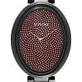 Женские керамические швейцарские часы с бриллиантами Rado Esenza R53094752, кварцевый механизм с высокой точностью. Сапфировое стеклоСапфировое стеклоПрочный и надёжный материал из кристалла сапфира синтетического происхождения, характеризующийся особой твёрдостью и устойчивостью к царапинам и повреждениям. устойчивое к появлению царапин, обладающее высокой прозрачностью. Класс водозащиты: 30 метров, позволит защитить корпус от случайных брызг или капель дождя. Корпус и браслет часов изготовлены из высокотехнологичной керамикиВысокотехнологичная керамикаИнновационный запатентованный Rado материал с гладкой или матовой поверхностью. Керамика за счёт кристаллической структуры обладает повышенной устойчивостью от возникновения царапин. Материал способен принимать температуру тела человека, обеспечивая невероятный комфорт при ношении.. Браслет на раскладной застёжкеРаскладная застёжкаТакой тип застёжки используется только на браслетах из металла. Она никогда не раскрывается полностью, происходит разделение на 2 и более частей. Раскладывающая застёжка снизит вероятность потери часов к минимуму.. Циферблат декорирован 534 оранжевыми сапфирами .801 карат.