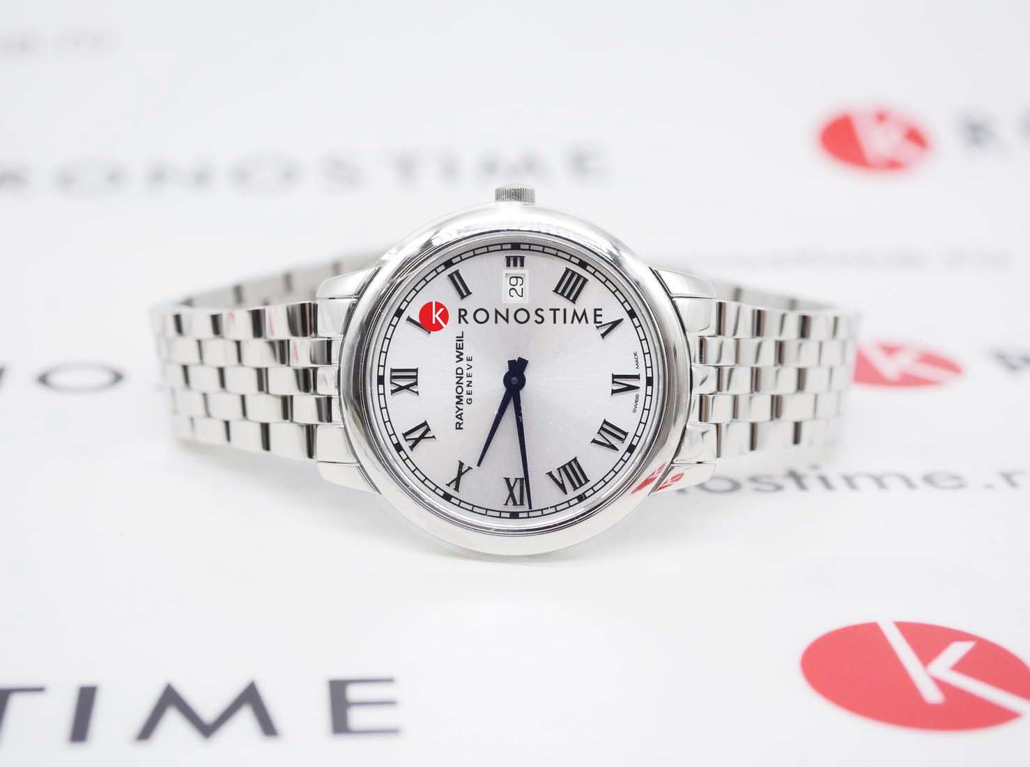 Raymond Weil Toccata (артикул 5385-ST-00659) — элегантные женские часы, сочетающие классический дизайн и функциональность. Корпус диаметром 34 мм выполнен из нержавеющей стали, что обеспечивает прочность и долговечность. Серебристый циферблат украшен римскими цифрами и синими стрелками, добавляя часам изысканности. Окошко даты на отметке «3 часа» обеспечивает удобство использования. Сапфировое стеклоСапфировое стеклоПрочный и надёжный материал из кристалла сапфира синтетического происхождения, характеризующийся особой твёрдостью и устойчивостью к царапинам и повреждениям. защищает часы от царапин, а водонепроницаемость до 50 метров делает их подходящими для повседневной носки. Надёжный кварцевый механизм гарантирует точность хода. Браслет из нержавеющей стали оснащён раскладной застёжкойРаскладная застёжкаТакой тип застёжки используется только на браслетах из металла. Она никогда не раскрывается полностью, происходит разделение на 2 и более частей. Раскладывающая застёжка снизит вероятность потери часов к минимуму. с двойной системой безопасности, что обеспечивает комфорт и надёжность при ношении.