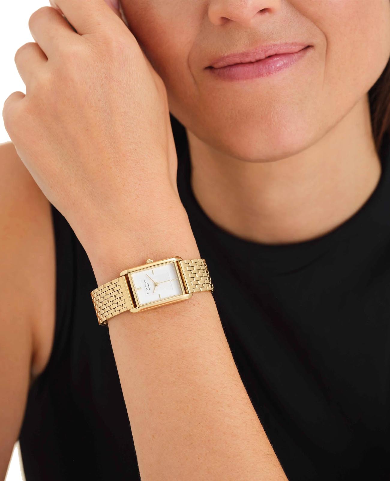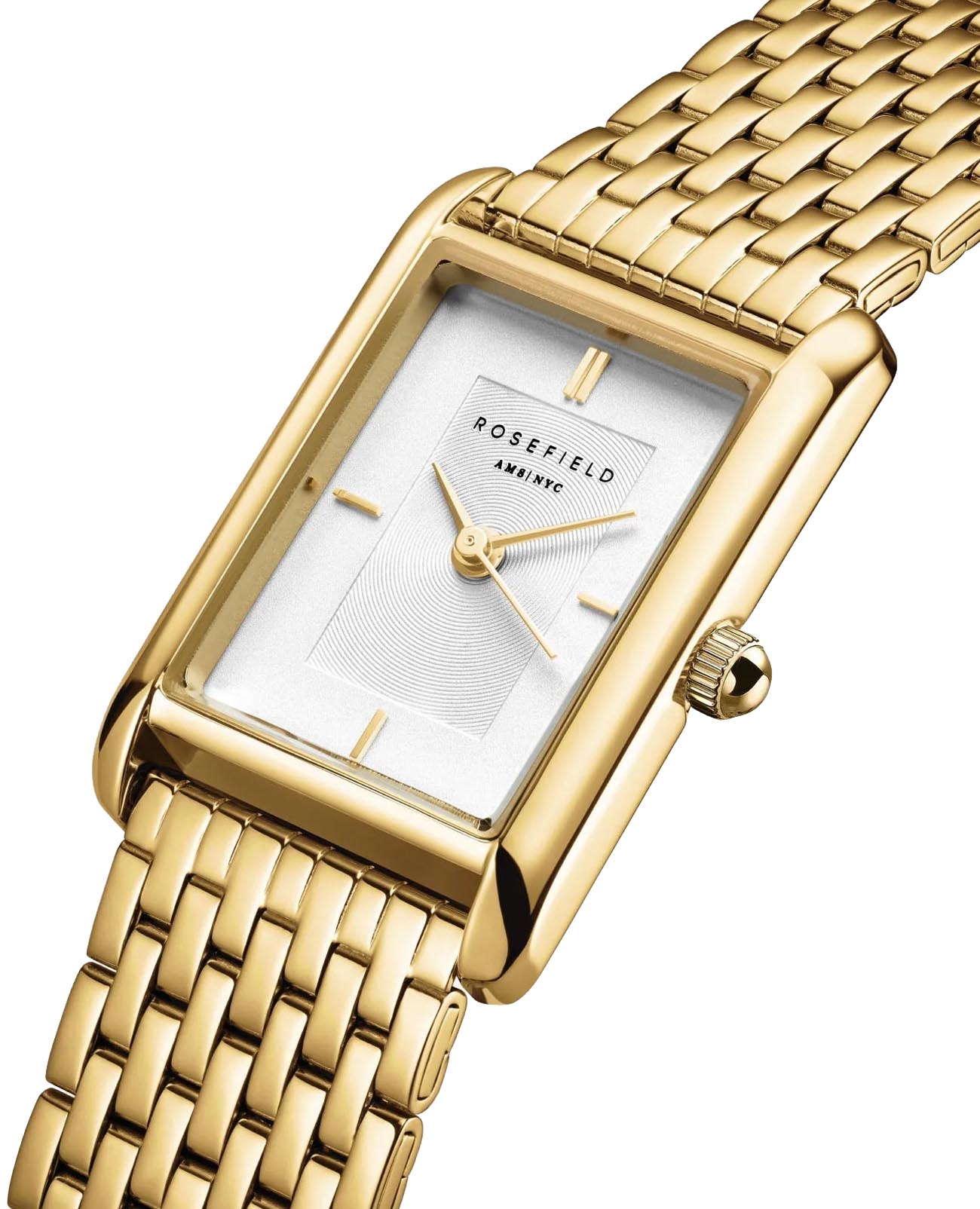 Женские кварцевые часы Rosefield Heirloom HWGSG-H01. Центральные часовая, минутная и секундная стрелки. Корпус и браслет выполнены из нержавеющей стали с IP-покрытиемIP-покрытиеМетод ионного напыления. Демонстрирует повышенную устойчивость к истиранию, окислению и химическим веществам. Под воздействием высокого давления и температуры около 1500°C молекулы металла надёжно соединяются с частицами корпуса часов.. Стальной браслет на раскладном замкеРаскладной замокДанный вариант застежки используется только на часах с металлическим браслетом. Отличительная особенность такого крепления в том, что длина браслета становится универсальной и вы можете самостоятельно отрегулировать нужный вам размер – застежка просто двигается по браслету часов.. Прочное минеральное стеклоМинеральное стеклоМинеральное стекло представляет собой искусственно выращенный минерал кварца. Такое стекло отличается особой устойчивостью к повреждениям и царапинам. Уступает по некоторым качествам сапфировому стеклу. устойчивое к мелким механическим повреждениям. Водостойкость Класс водозащиты: 30 метров, позволит защитить корпус от случайных брызг или капель дождя.