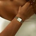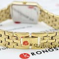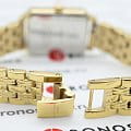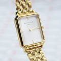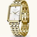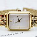 Женские кварцевые часы. Центральные часовая, минутная и секундная стрелки. Серебристый циферблат. Восьмиугольный корпус выполнен из металла с IP покрытием цвета желтого золота. Размер корпуса составляет 19,5 х 24 мм, толщина 7 мм. Стальной браслет с покрытием, браслетная застежка. Прочное минеральное стекло устойчивое к мелким механическим повреждениям. Водостойкость WR 30 (брызги).