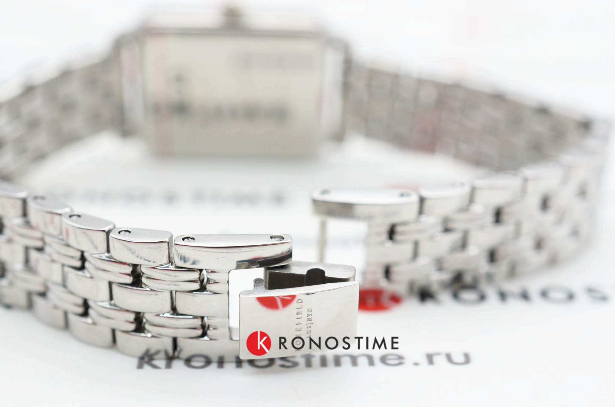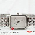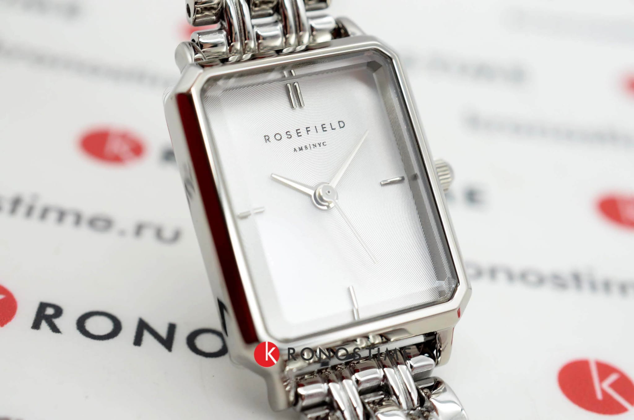 Женские кварцевые часы. Центральные часовая, минутная и секундная стрелки. Серебристый циферблат. Восьмиугольный корпус выполнен из металла с серебристым IP покрытием. Размер корпуса составляет 19,5 х 24 мм, толщина 7 мм. Стальной браслет, браслетная застежка. Прочное минеральное стекло устойчивое к мелким механическим повреждениям. Водостойкость WR 30 (брызги).
