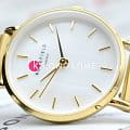 Перламутровый циферблат дополнен золотистыми стрелками и метками, что подчёркивает изысканный стиль модели. Браслет из нержавеющей стали с PVD-покрытиемPVDУльтратонкое покрытие наносится в технике вакуумного напыления, сочетает в себе нитрид титана особой прочности со слоем золота или оксида хрома. Несёт в себе декоративную или защитную функцию. и раскладной застёжкойРаскладная застёжкаТакой тип застёжки используется только на браслетах из металла. Она никогда не раскрывается полностью, происходит разделение на 2 и более частей. Раскладывающая застёжка снизит вероятность потери часов к минимуму. обеспечивает комфортное ношение и долговечность.