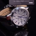 Кварцевые часы. Калибр 5Т82. 12/24 часовой формат времени. Второй часовой пояс. Индикатор числа. Будильник. Корпус из нержавеющей стали. Минеральное стекло. Кожаный ремень. Диаметр 42 мм.